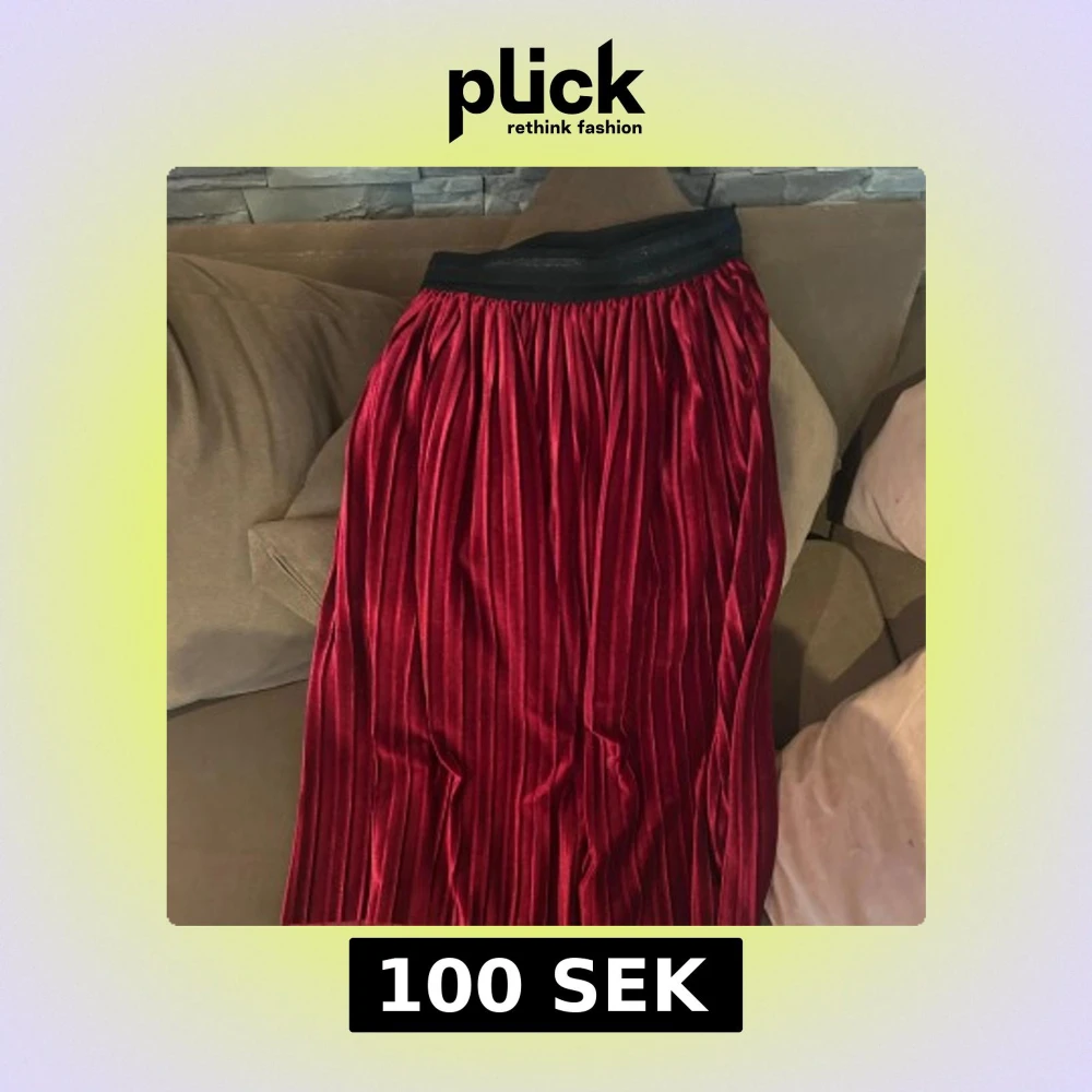 Snygg röd plisserad långkjol från Size Needle med bred svart resår i midjan. Kjolen har en glansig finish och ett elegant fall som ger en cool och trendig look. Perfekt för dig som vill sticka ut med färg och stil.