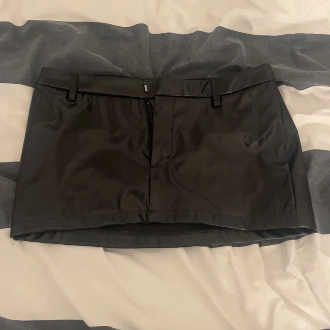 Jättesnygg svart skinnkjol som tyvärr är för liten för mig