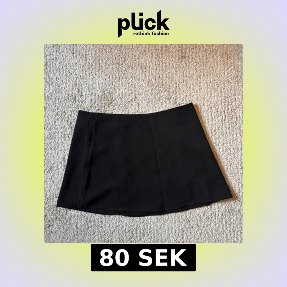 Enkel och stilren svart kortkjol med rak passform. Kjolen är utan synliga detaljer och passar perfekt till många olika outfits. Materialet känns mjukt och följsamt. och även en dragkedja på sidan