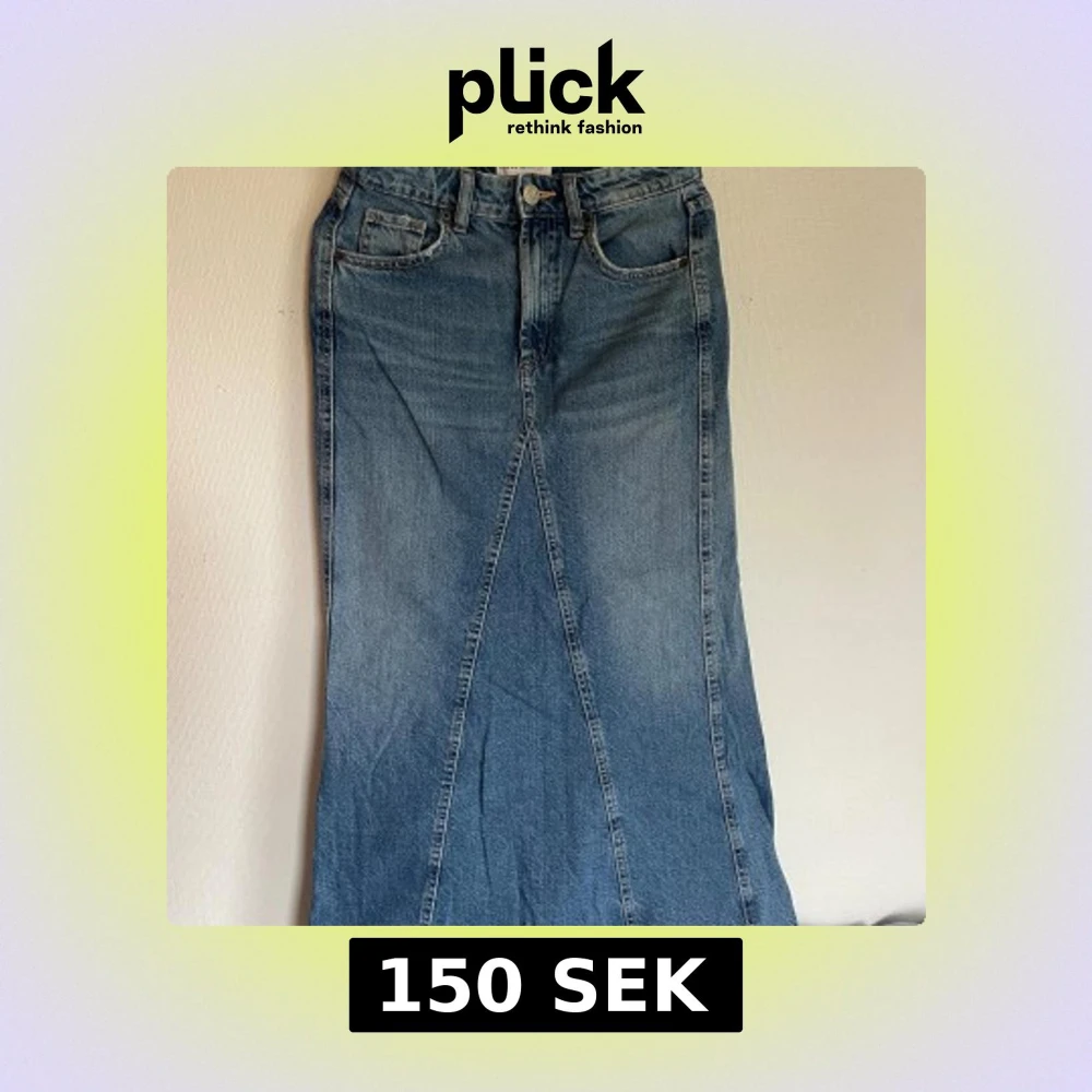 Snygg lång jeanskjol i klassisk blå denim med femficksmodell och hög midja. Kjolen har en lätt utsvängd form och markerade sömmar framtill som ger en cool vintagekänsla. Perfekt att styla med sneakers eller boots.