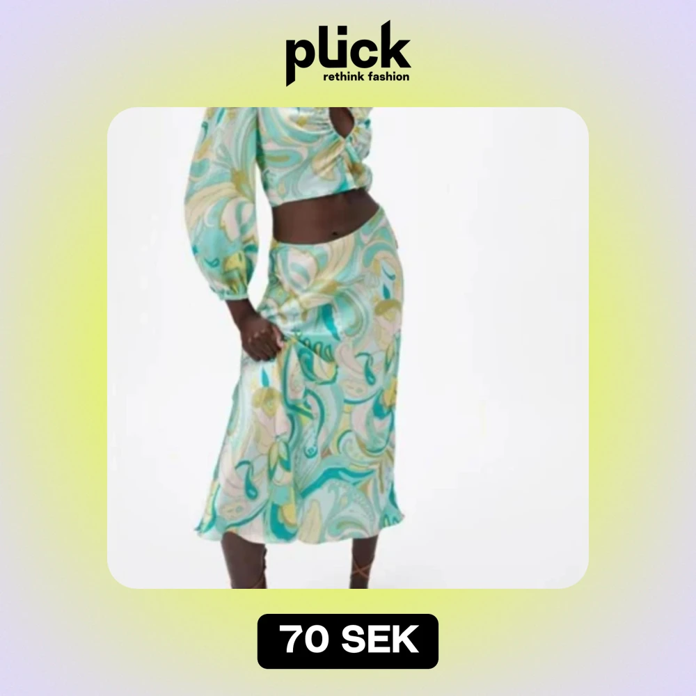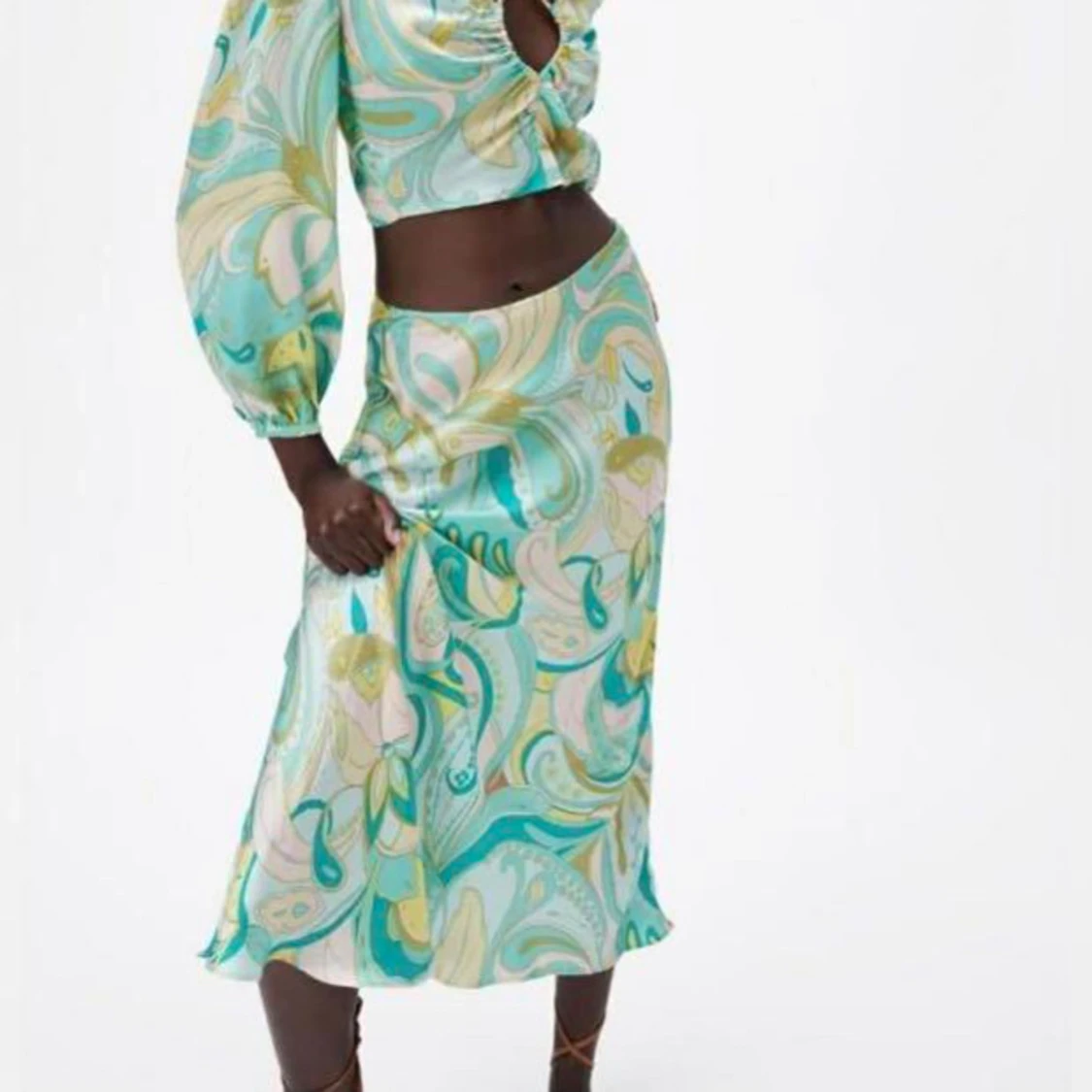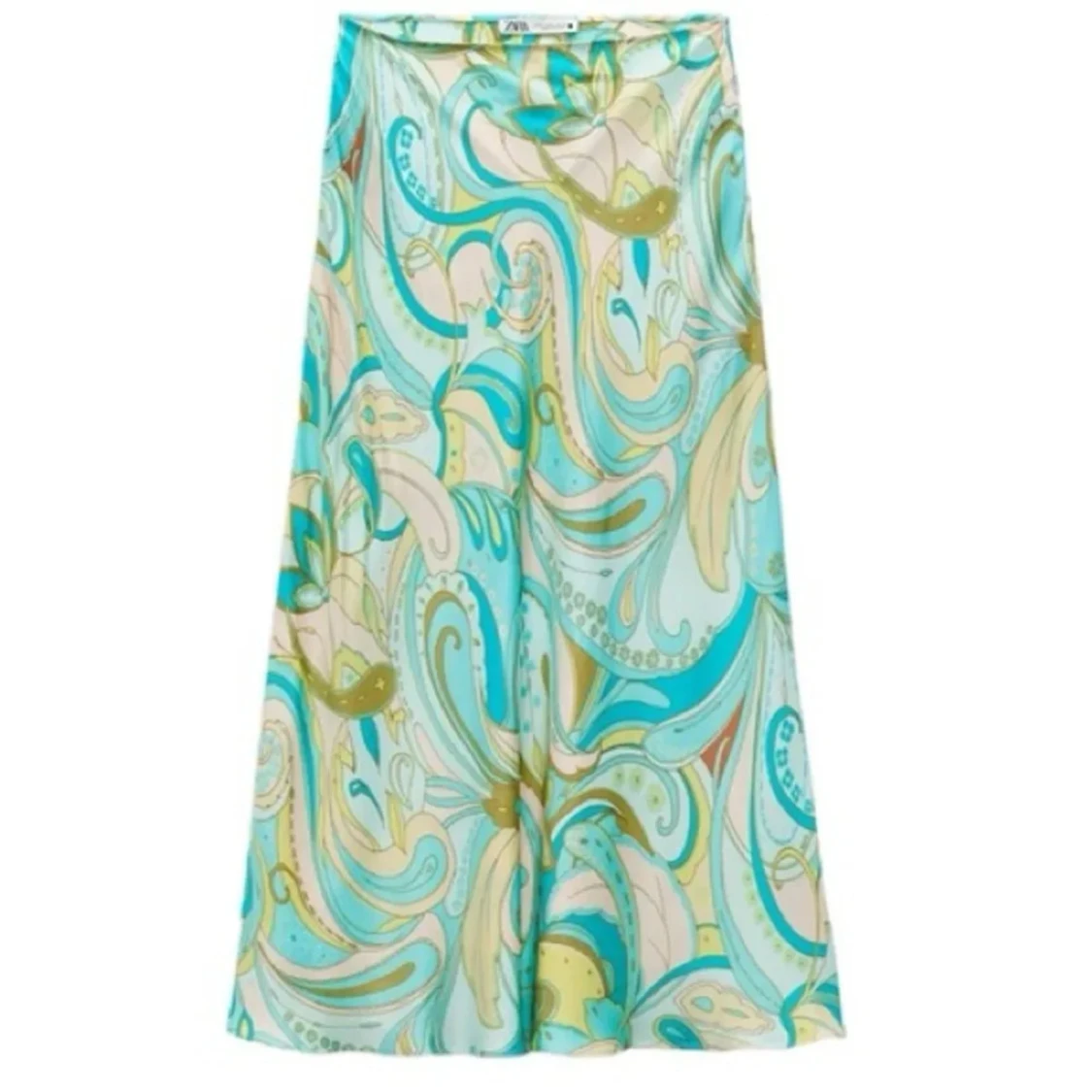 Turkos/grön/blå mönstrad midikjol från Zara, sparsamt använd