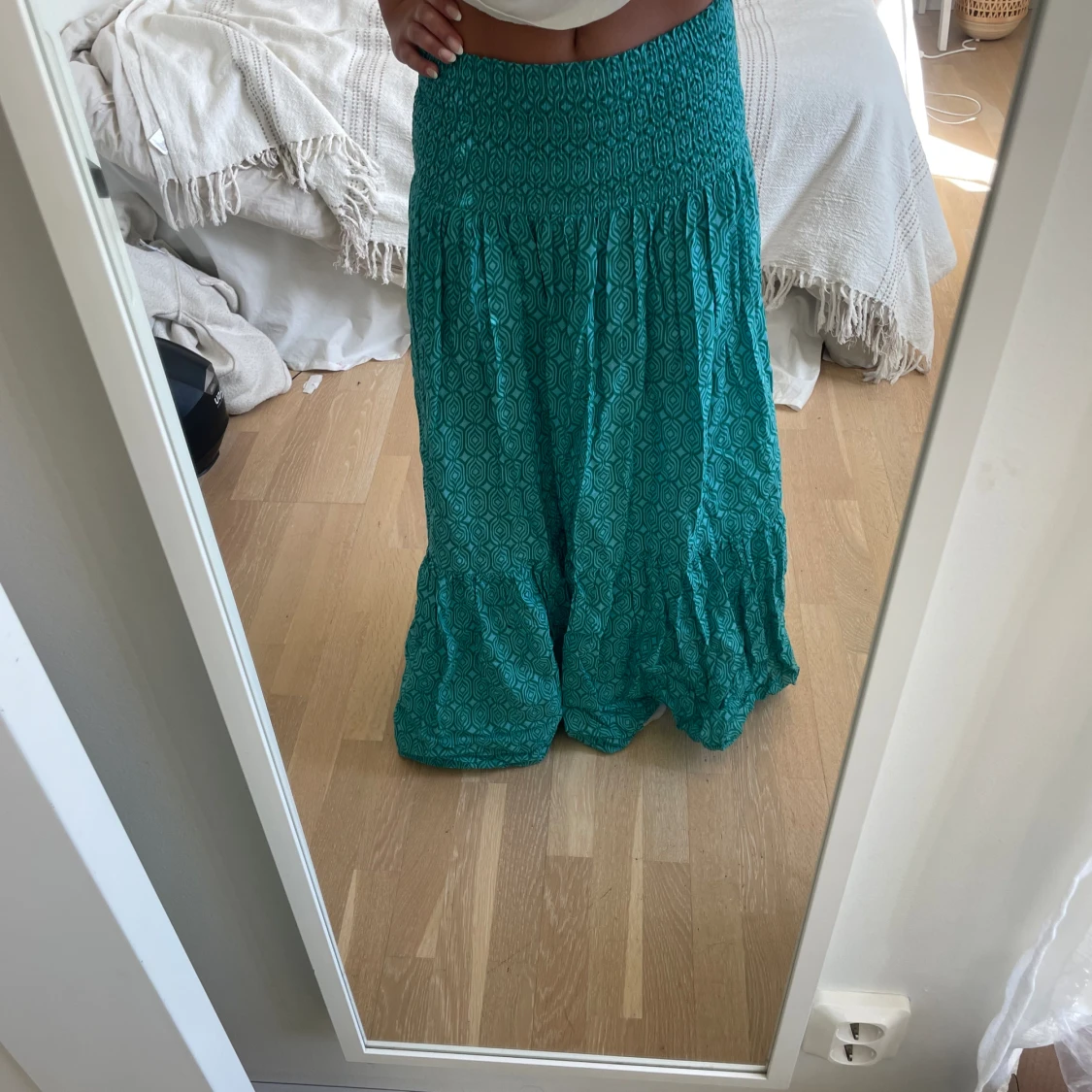 En grön/ turkos mönstrad lång kjol från zara. Inga fläckar eller andra skavanker. Kjolen är i storlek xs. Skriv om ni har fler frågor❣️ Priset kan diskuteras☀️🌴