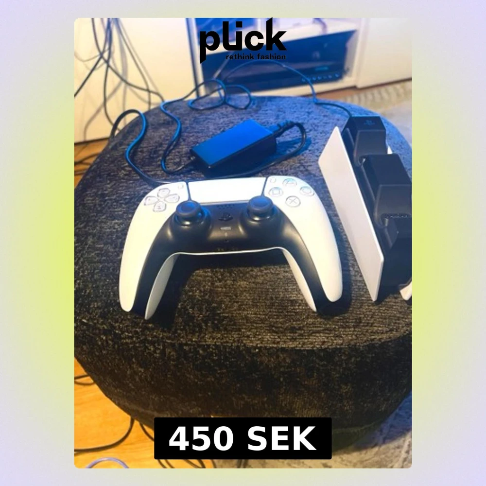 Sony DualSense handkontroll i vit och svart Orginal Sony laddningsstation medföljer med adapter. Kontroll fungerar felfritt utan stickdrift.