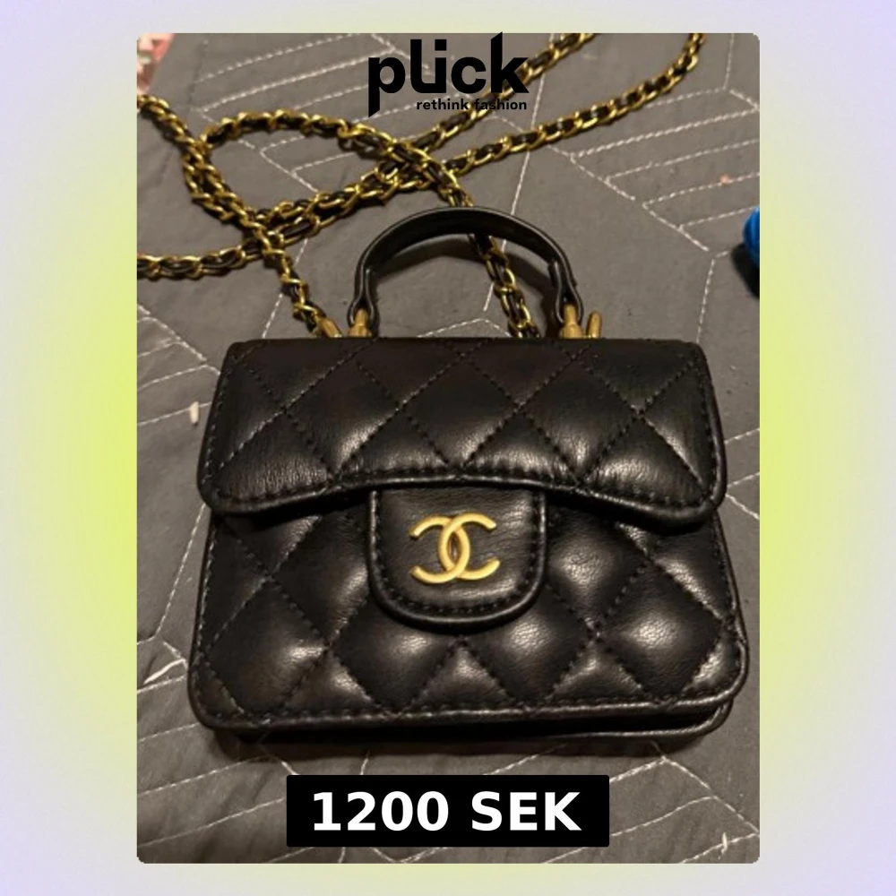 Säljer en svart quiltad handväska från Chanel med guldfärgade detaljer och kedjerem. Väskan har det klassiska CC-spännet framtill och är tillverkad i läder. Perfekt för dig som vill ha en ikonisk och stilren accessoar.