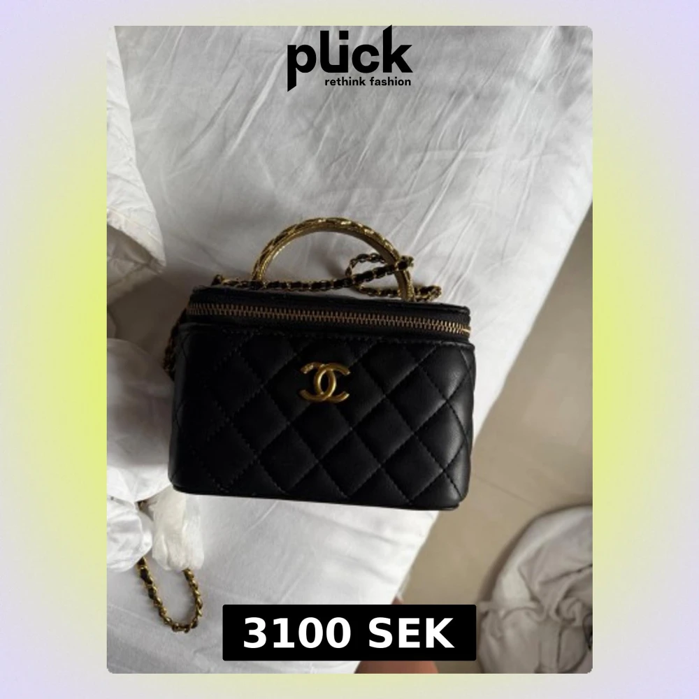 Jag kan minska priset 😊även kan mötas i stockholm . Säljer en svart quiltad handväska från Chanel med guldfärgade detaljer och kedjerem. Väskan har det klassiska CC-spännet framtill, dragkedja upptill och ett litet handtag. Insidan har spegel och kortfack. Perfekt för dig som gillar lyxiga accessoarer.
