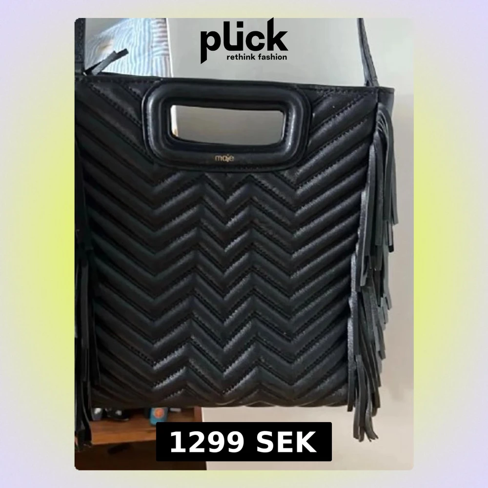 Snygg svart handväska från Maje i quiltat konstläder med chevronmönster. Väskan har fransar på sidorna och ett inbyggt handtag upptill. Perfekt accessoar för att lyfta din outfit med en cool och trendig touch.