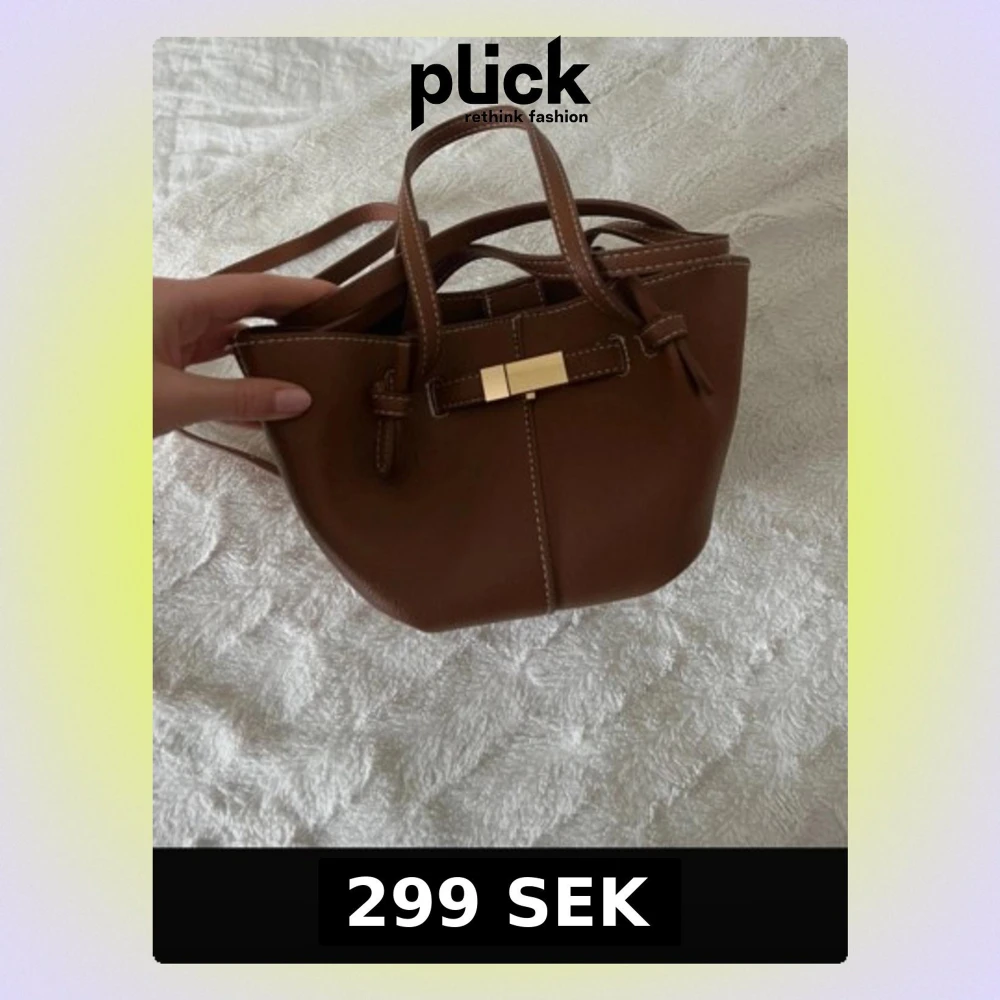 Snygg brun minihandväska i slätt läder med vita sömmar och guldfärgat spänne framtill. Väskan har både handtag och justerbar axelrem, perfekt för att bära crossbody. Stilren och trendig modell med detaljer i minimalistisk design.