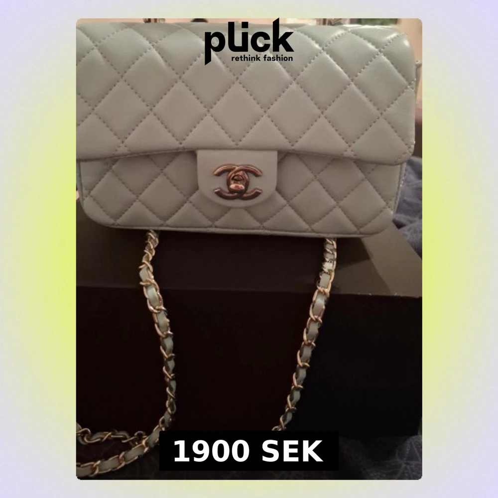 Supersnygg ljusblå handväska . Kedjerem med insytt läder ger en lyxig känsla och väskan har en tidlös, boxig form. Perfekt för dig som vill ha något exklusivt och trendigt.