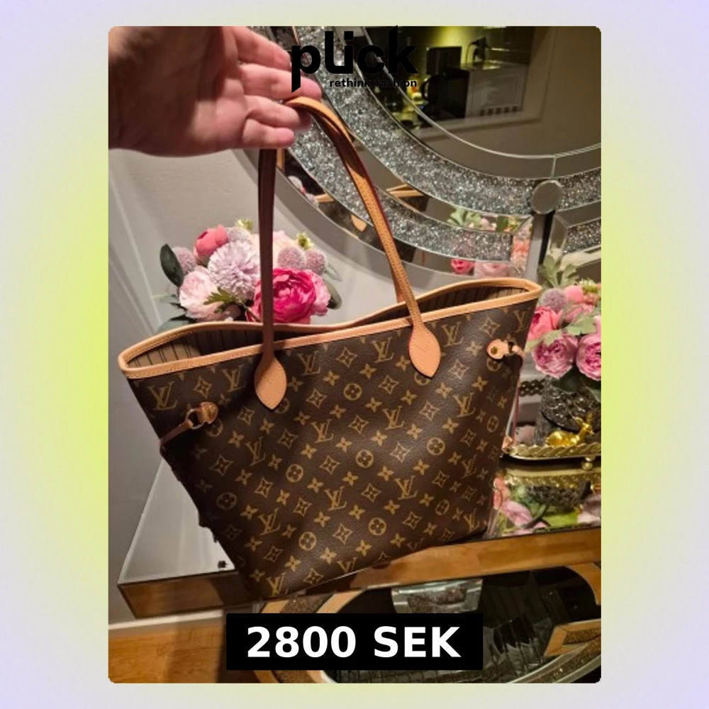 Säljer en klassisk Louis Vuitton AAA kopia, Neverfull handväska i brunt monogramcanvas med beige läderdetaljer och långa axelband. Väskan har öppen topp, randigt beige innerfoder och en stor innerficka med dragkedja. Perfekt för dig som gillar lyxig och tidlös design.
