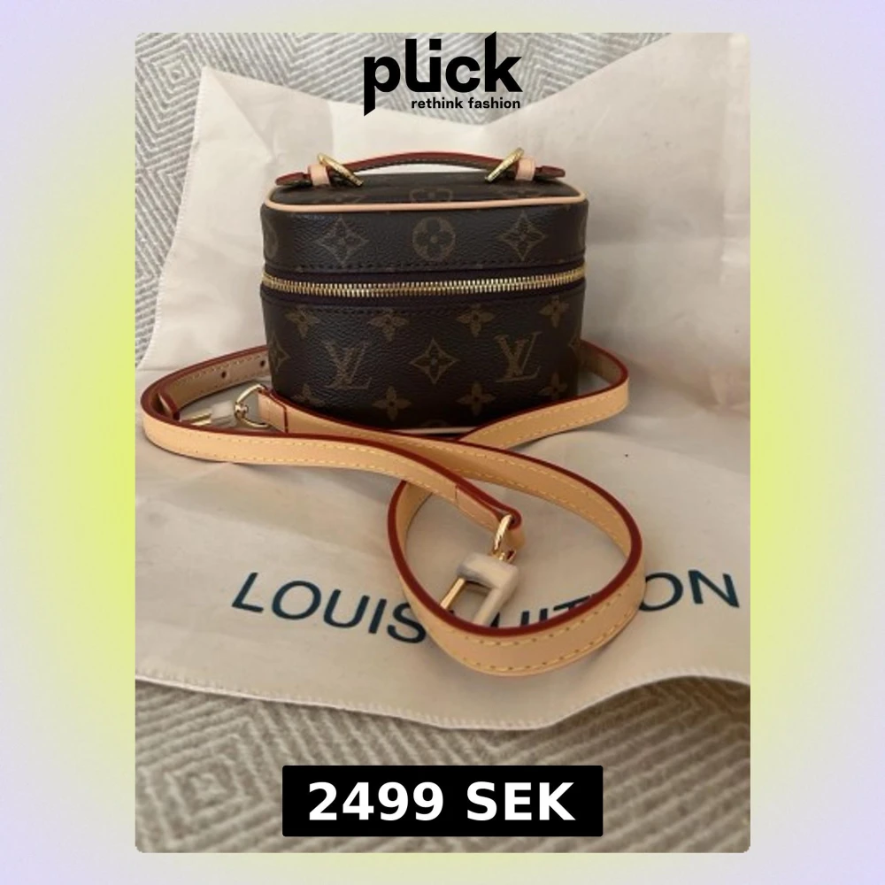 Säljer en liten och trendig handväska sminkväska i klassiskt brunt monogrammönster. Väskan har guldfärgade detaljer, beige läderrem och dragkedja. Perfekt crossbody-modell med justerbar axelrem och snygg topphandtag. Äkta skinn och canvas.