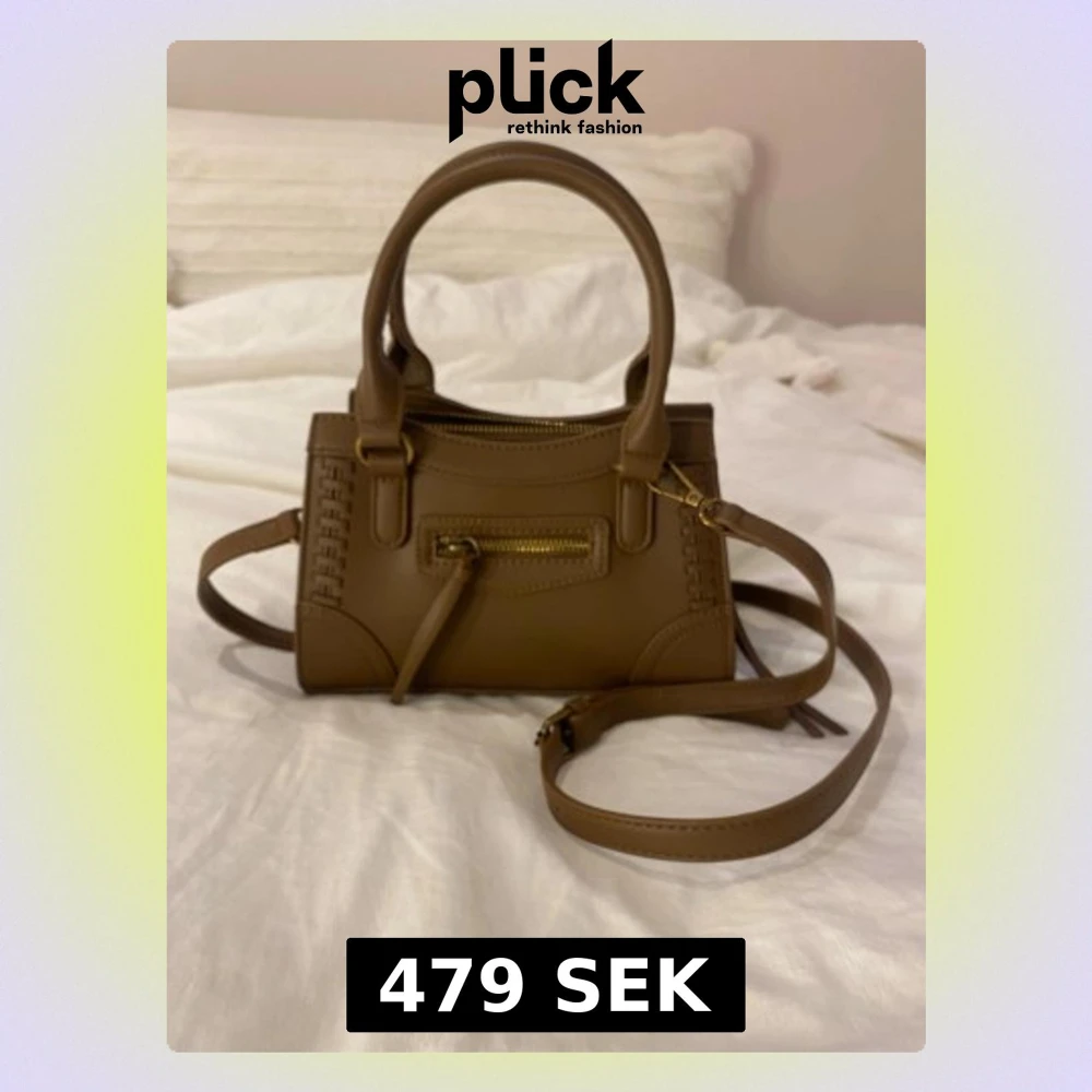 Snygg brun minihandväska i slätt konstläder med guldfärgade detaljer. Väskan har både handtag och justerbar axelrem samt en liten ficka med dragkedja framtill. Dekorativa sömmar längs kanterna ger en cool touch. Perfekt för dig som gillar stilrena accessoarer.