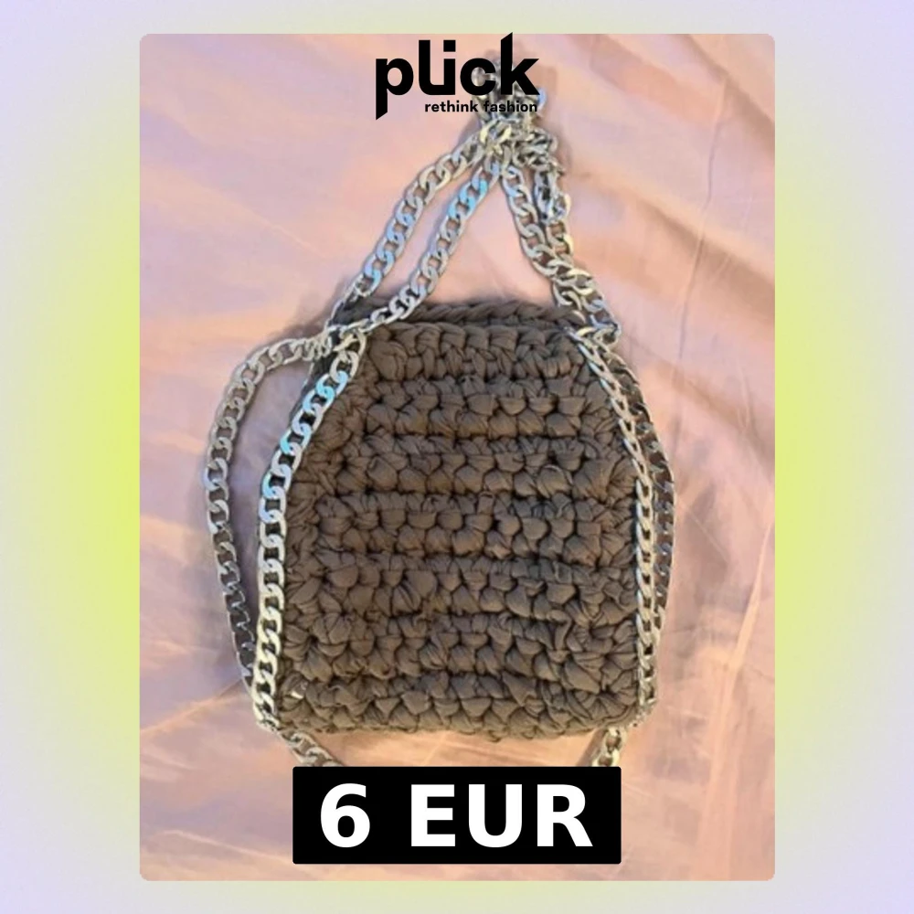 Grå virkad handväska med kedja