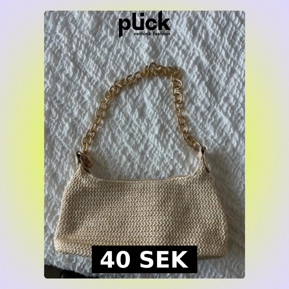 Beige stickad handväska med guldkedja