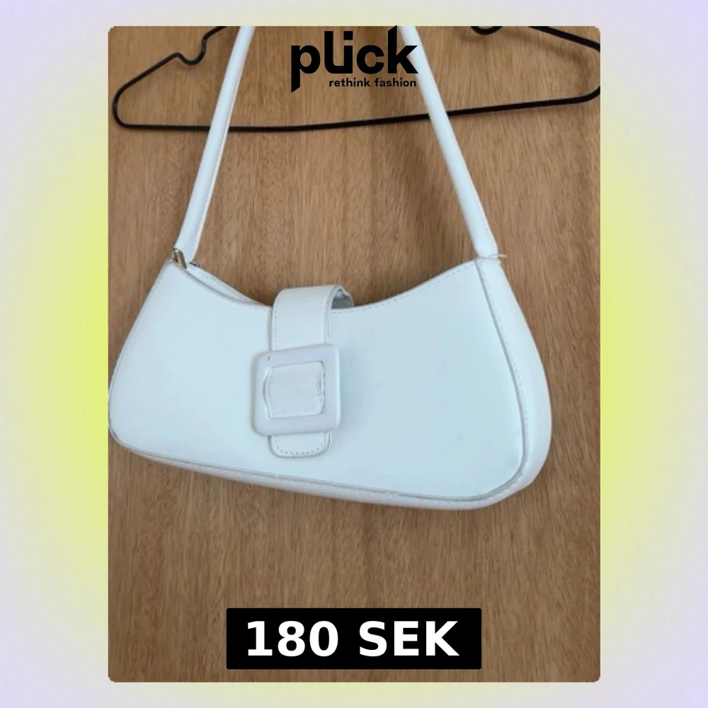 Snygg vit handväska i avlång modell med axelrem och dekorativt spänne framtill. Väskan har minimalistisk design och är tillverkad i slätt konstläder. Perfekt accessoar för att lyfta din outfit.
