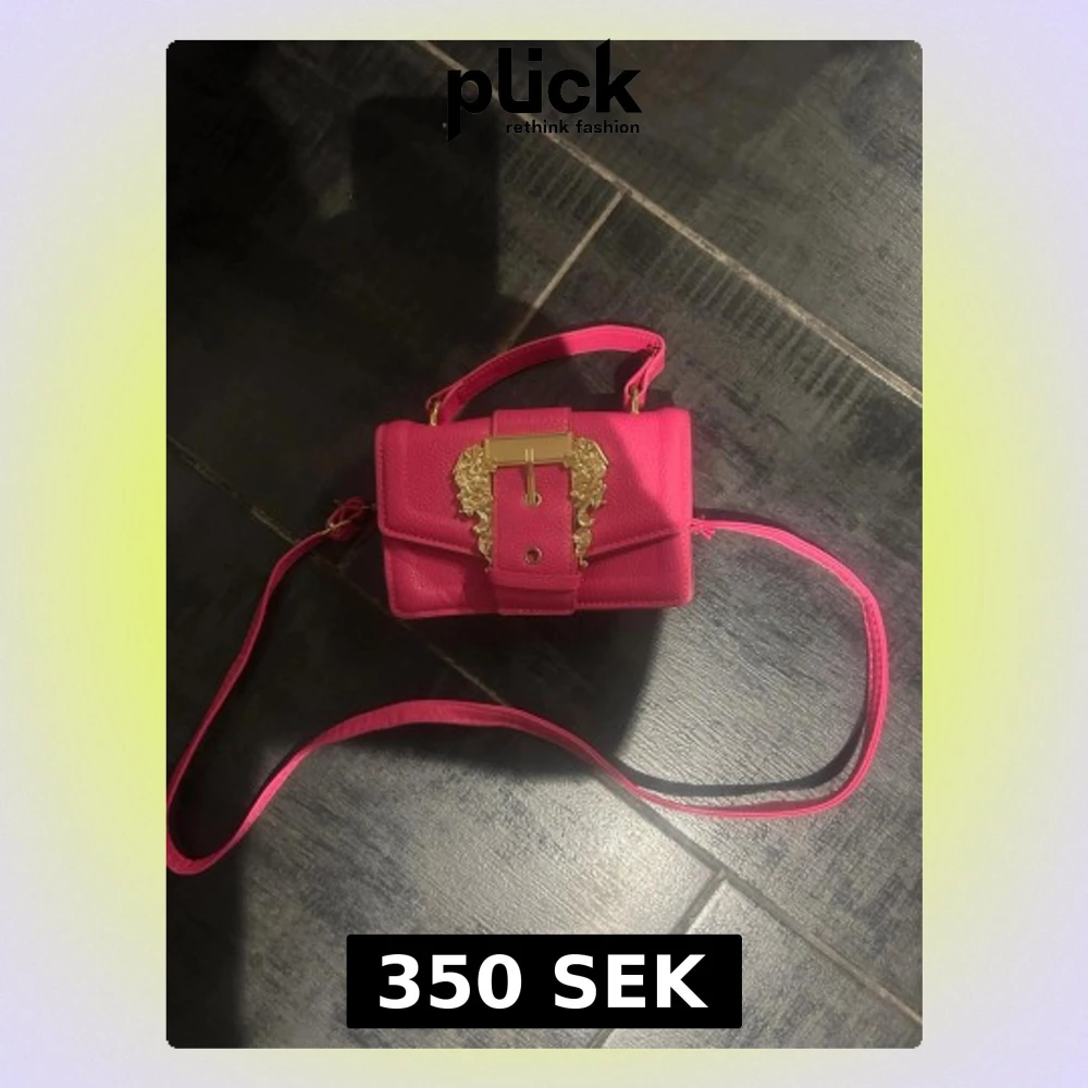 Snygg rosa handväska i konstläder med justerbar axelrem och dekorativt guldfärgat spänne framtill. Väskan har en strukturerad yta och ett handtag upptill för olika bärstilar. Perfekt accessoar för att lyfta din outfit.