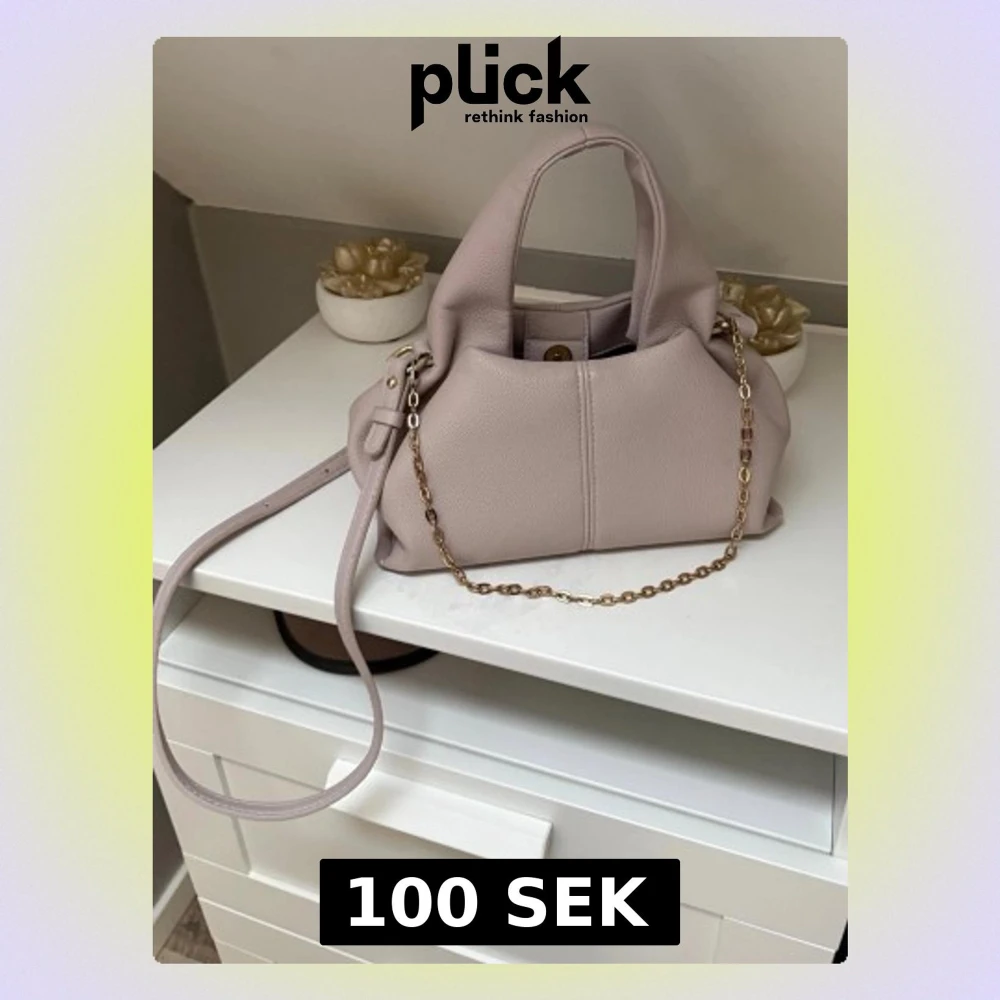 Trendig ljuslila handväska i mjukt, strukturerat konstläder. Väskan har både ett kort handtag och en längre axelrem samt en snygg guldfärgad kedjedetalj. Stängs med magnetknapp och har en stilren, modern form som passar till många outfits.