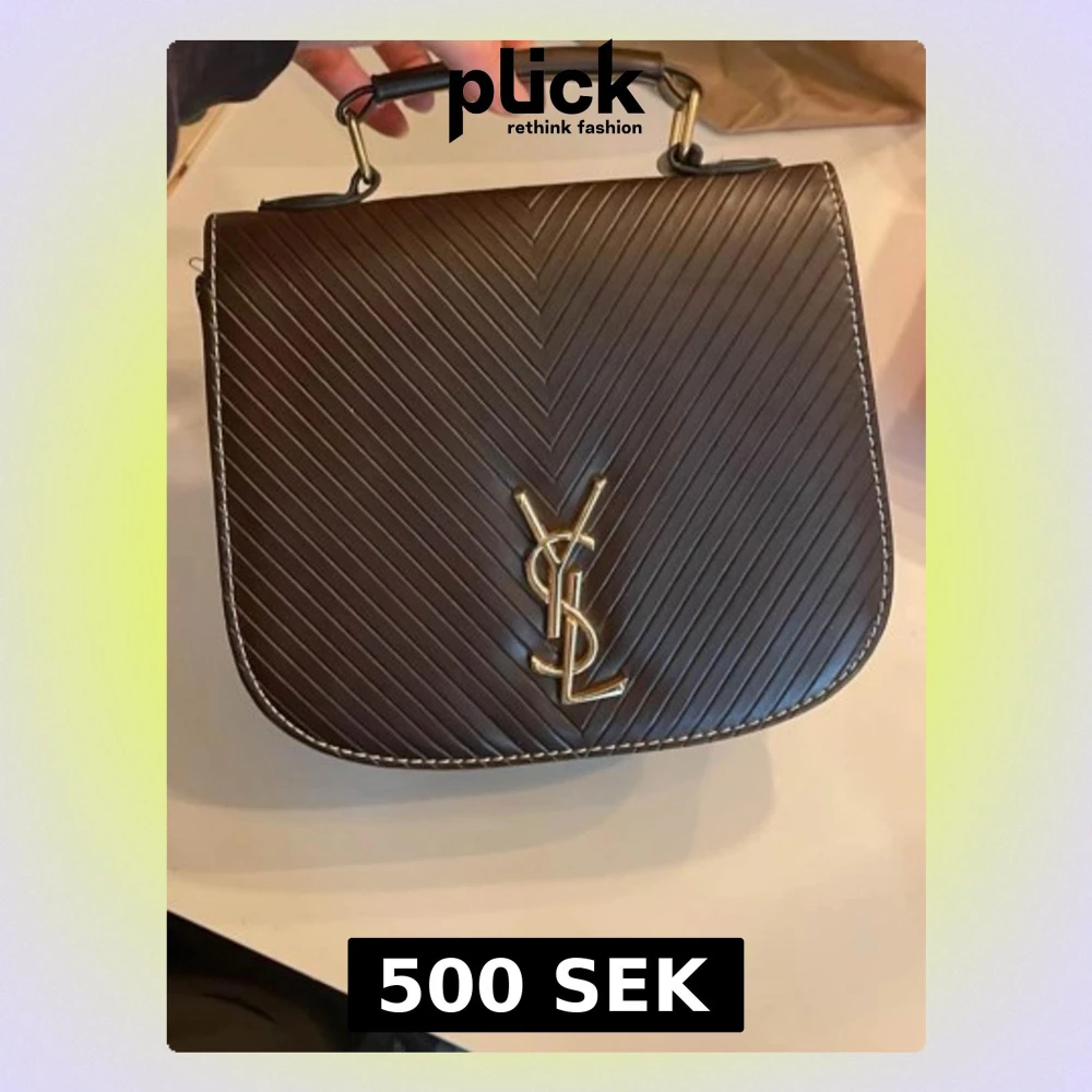 Snygg brun handväska guldfärgat logotyp på framsidan. Väskan har ett robust handtag och vita kontrastsömmar längs kanterna. Insidan är rymlig med ficka och guldfärgad kedja du kan ha över axeln. Perfekt accessoar för att lyfta din outfit.