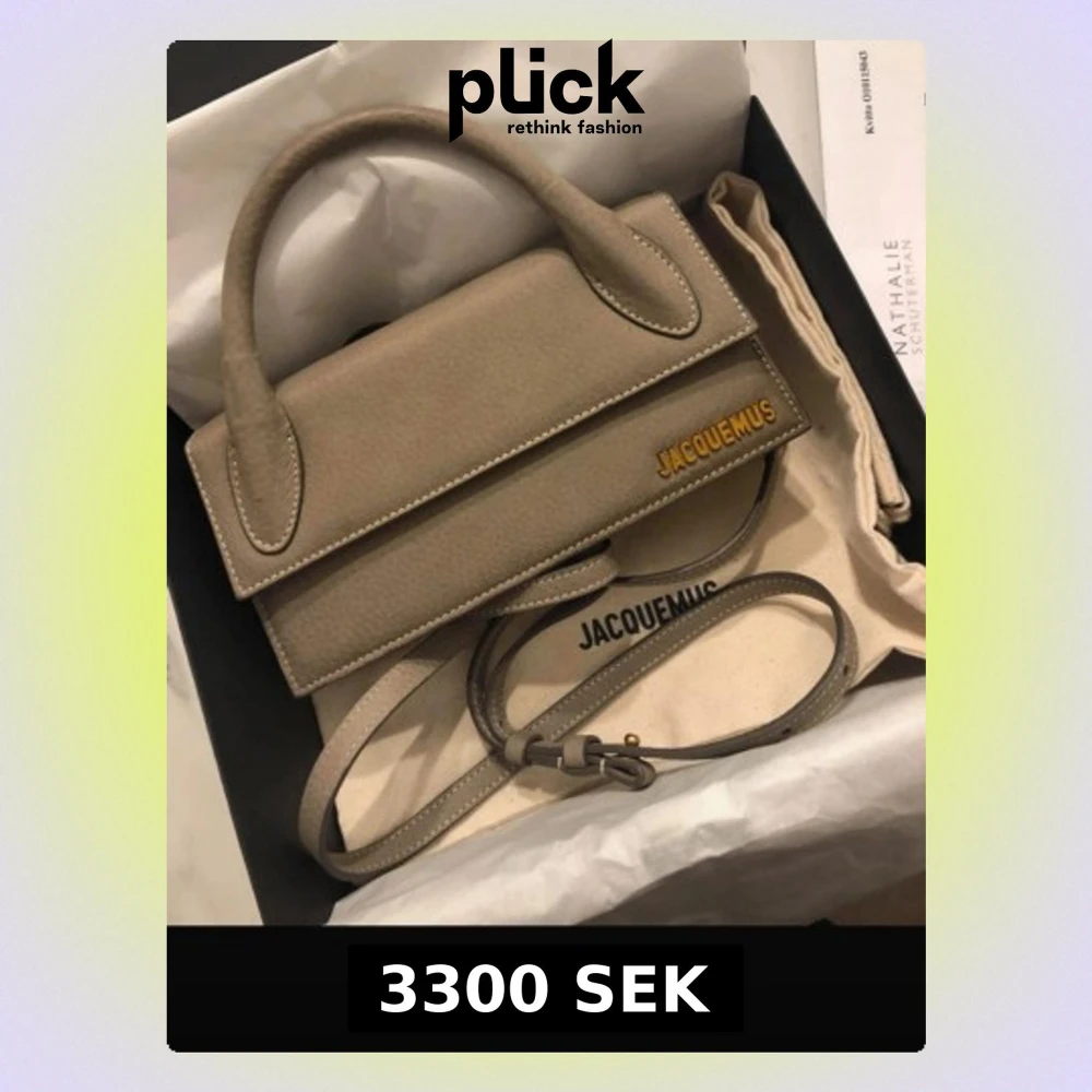 Säljer en beige miniväska från Jacquemus med guldfärgad logga på framsidan, lite defekter på framsida och i väskan, skriv för mer bilder!