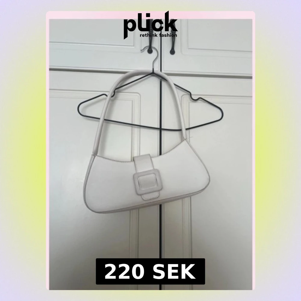 💓Snygg vit axelväska i minimalistisk design med ett stort dekorativt spänne framtill. Väskan har en mjukt böjd form och långa handtag som gör den enkel att bära över axeln. Materialet ser ut som konstläder och väskan har en stilren look som passar till många outfits.💞fler väskor ser du i min sida