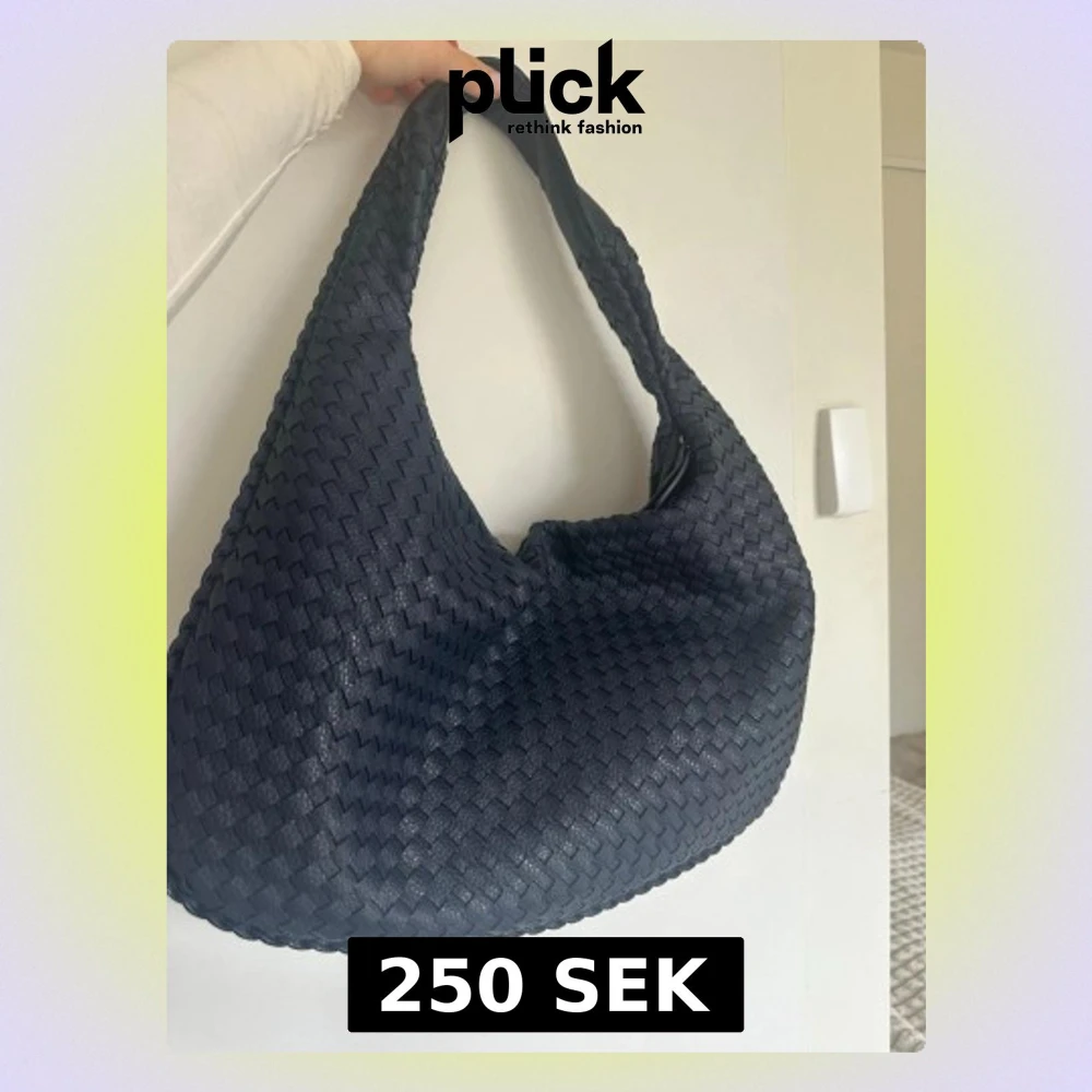Marinblå flätad axelväska i läderstil