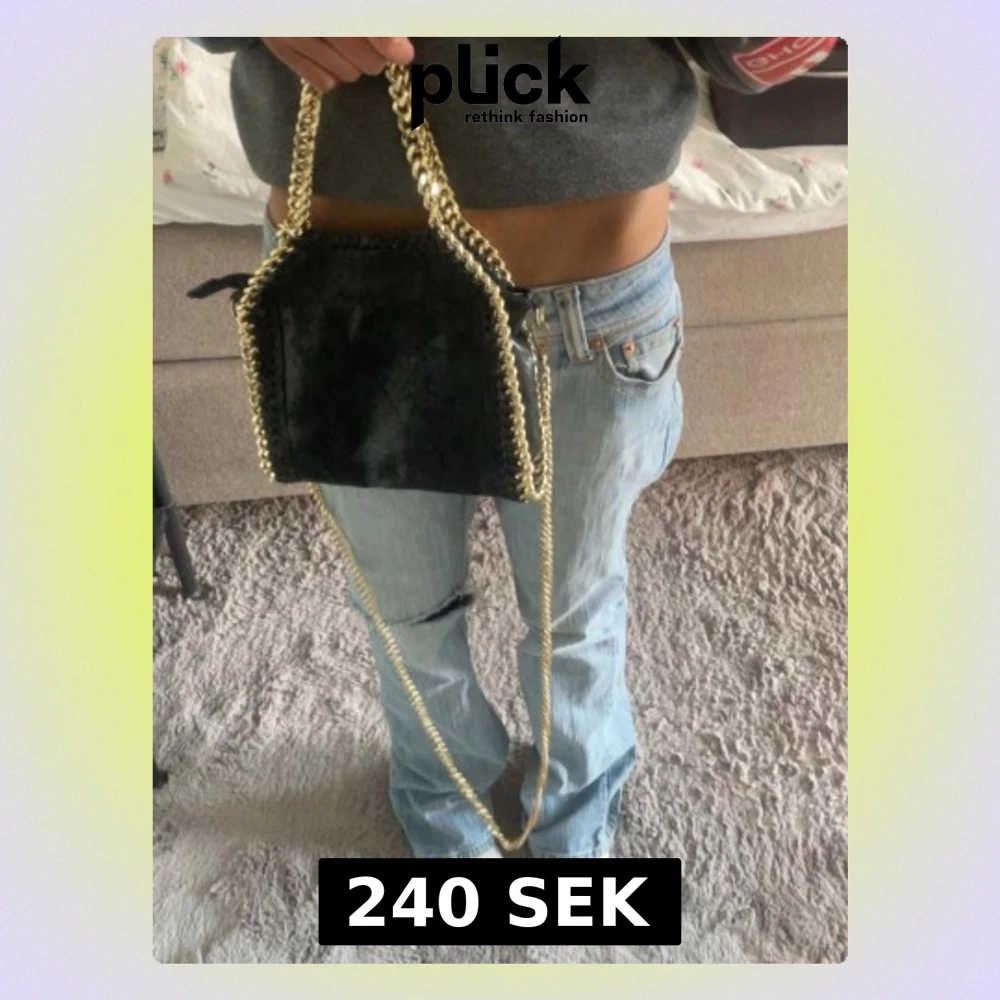 Snygg svart väska med gulddetaljer som är Stella McCartney liknande köpt i Italien