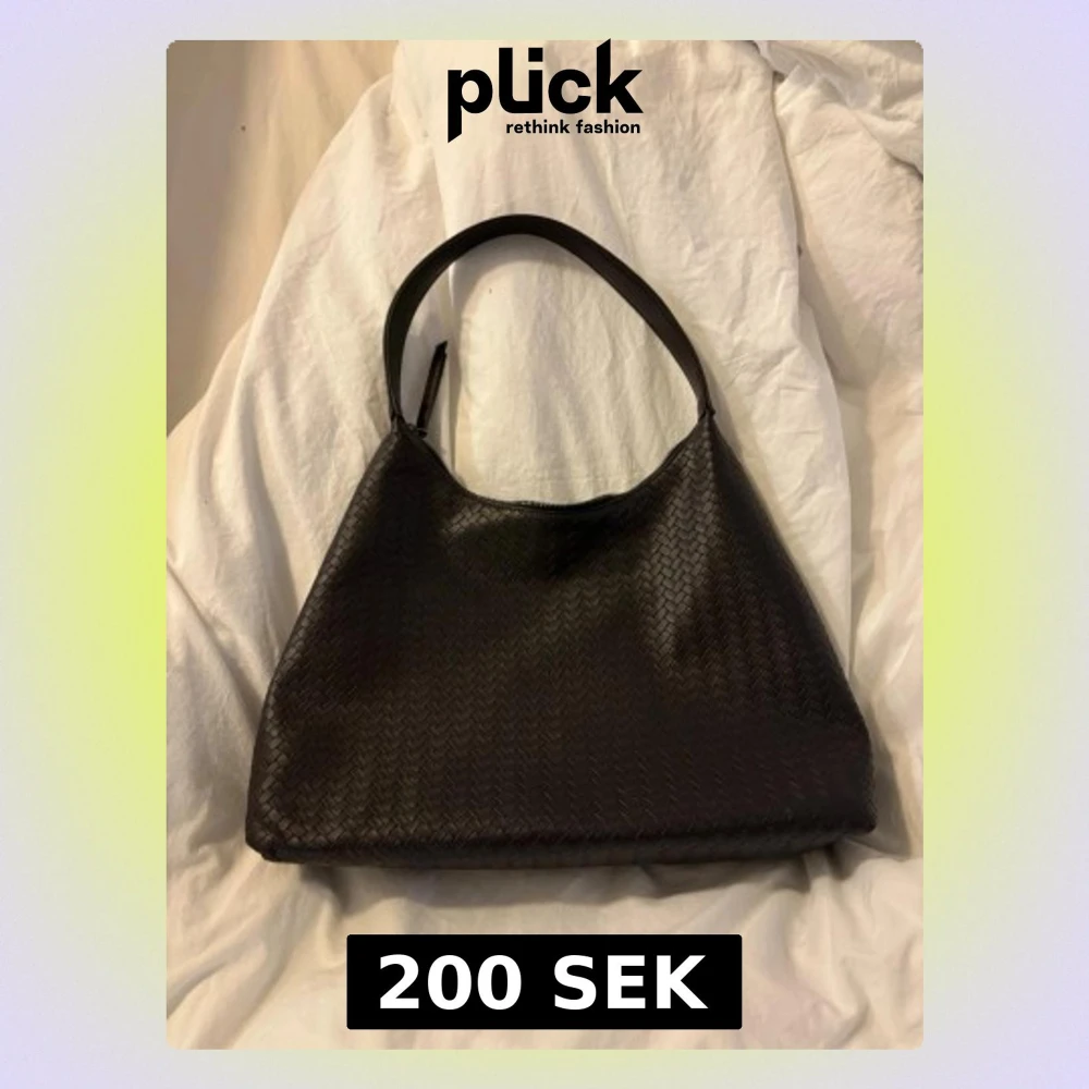 Snygg svart handväska med flätad struktur och mjuk, halvmåneformad design. Väskan har ett brett axelband och dragkedja upptill. Tillverkad i skinnimitation som ger en lyxig känsla. Perfekt för dig som gillar stilrena accessoarer.