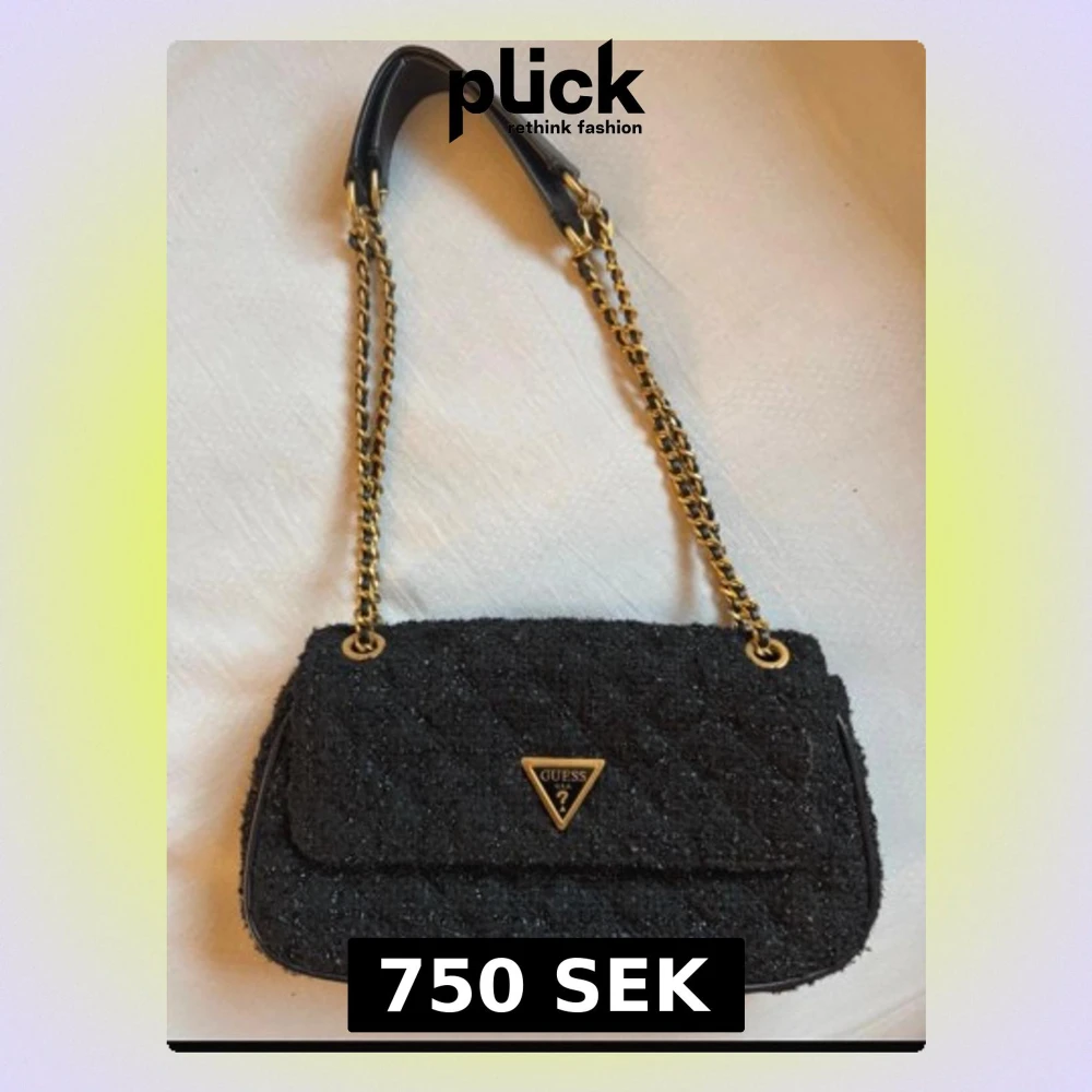 Stilren svart axelremsväska från Guess, väskan har guldiga detaljer och den är endast använd ett fåtal gånger, den får plats med det allra viktigaste, nypris 1080kr💞