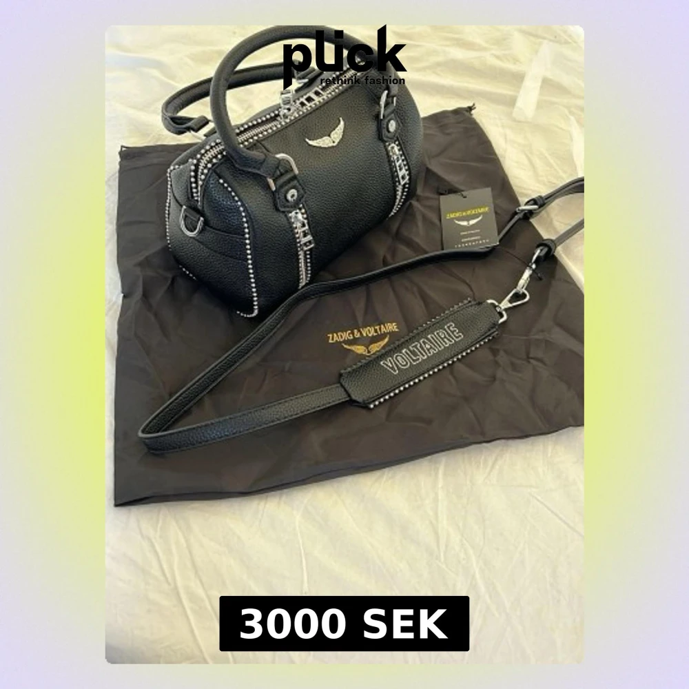 Cool svart handväska i läder från Zadig & Voltaire med silverfärgade dragkedjor, nitar och logga framtill. Väskan har både handtag och en justerbar axelrem med broderad VOLTAIRE-text. Perfekt för dig som gillar edgy och trendig stil.
