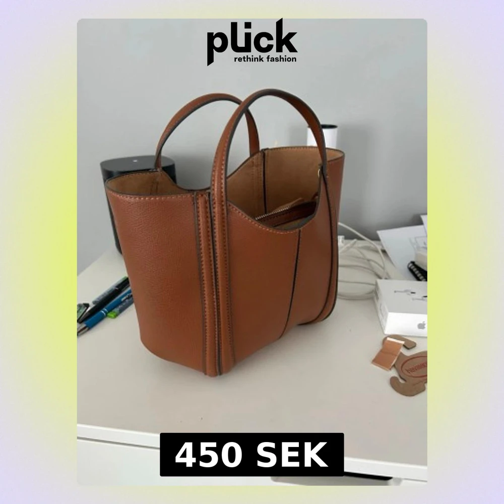 Snygg brun handväska från Zara med två stadiga handtag och stilrena sömmar. Väskan har en öppen design med innerfack och dragkedja. Ser ut som ny, den har inga defekter. 😊🌸