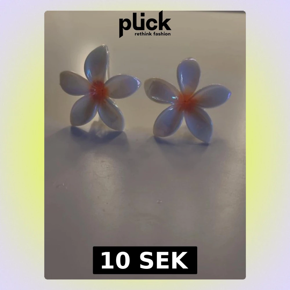 Två söta hårklämmor formade som vita blommor med fem kronblad och en mjukt orange mitt. Klämmorna är gjorda i glansig plast och har en genomskinlig klämma på baksidan. Perfekt för att piffa upp frisyren med en tropisk vibe.