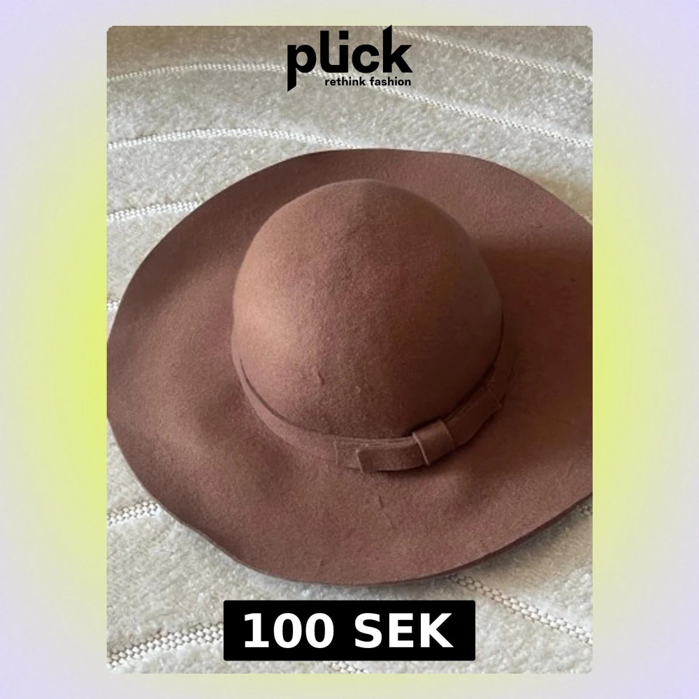 Säljer en snygg brun filthatt med breda brätten och ett dekorativt band runt kullen. Hatten har en klassisk form och är tillverkad i mjukt filtmaterial som ger en stilren och trendig look.