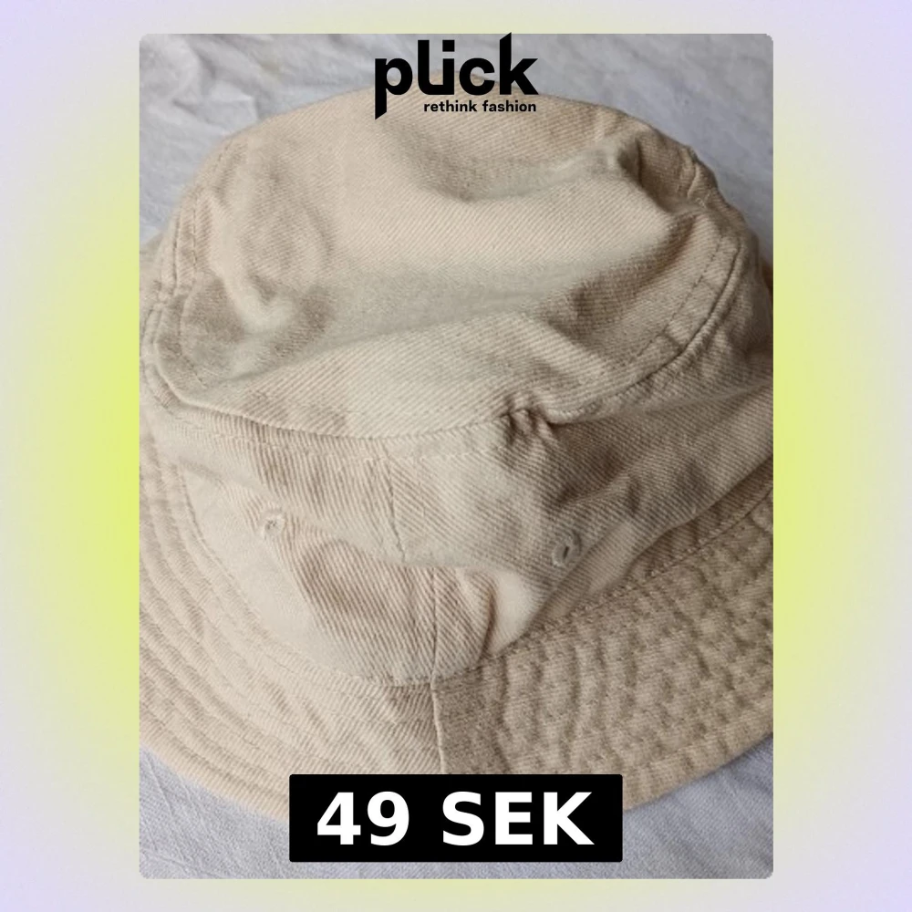Säljer en stilren beige bucket hat i mjuk bomull. Hatten har klassisk form med rundad kulle och bred, nedåtlutande brätte. Perfekt för en avslappnad streetwear-look och enkel att matcha med olika outfits.