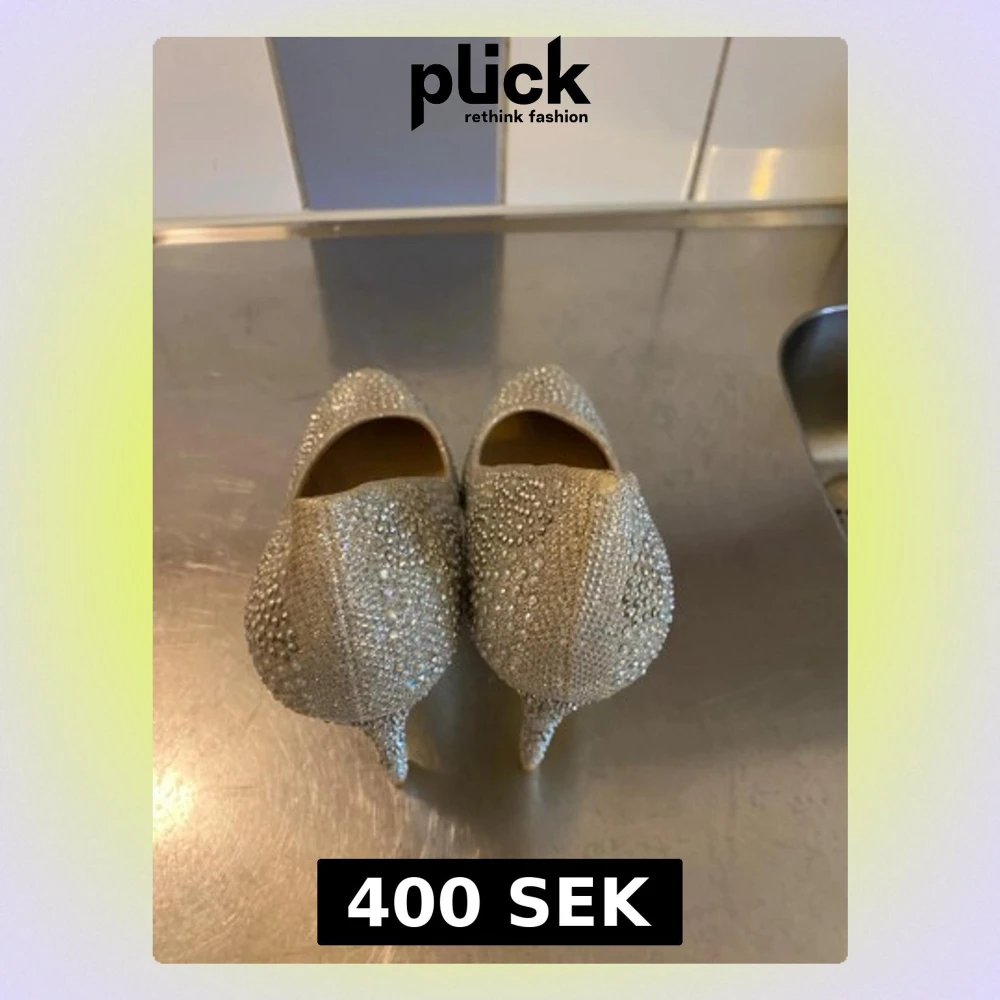 Säljer ett par snygga pumps från Maripé i beige med massor av små glittrande stenar över hela skon. Skorna har rundad tå och hög klack, perfekta för att sticka ut. Materialet är textil täckt med strass som ger en lyxig känsla.