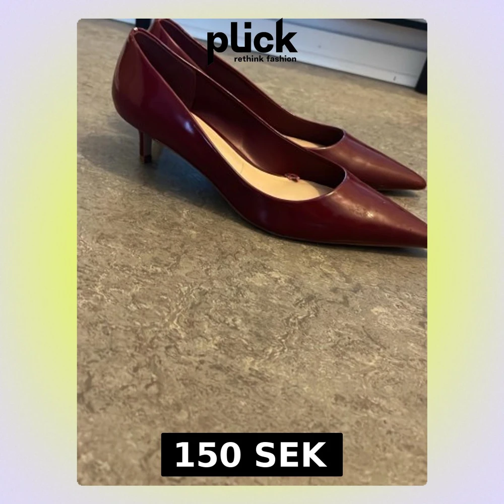 Snygga vinröda pumps från Mango med spetsig tå och låg klack. Skorna är i glansigt material och har en klassisk, elegant design som passar perfekt till både jeans och klänning. Perfekta för dig som gillar stilrena och trendiga skor.