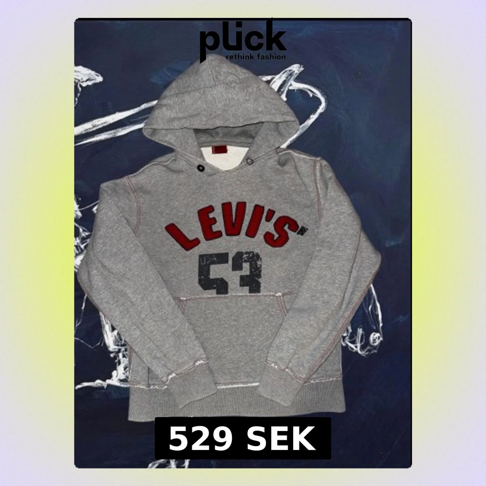 Snygg grå hoodie från Levi's med röd broderad logga och siffran 53 i svart tryck på bröstet. Hoodien har huva med dragsko, magficka och ribbade muddar vid ärmar och nederkant. Perfekt för en avslappnad och sportig stil.