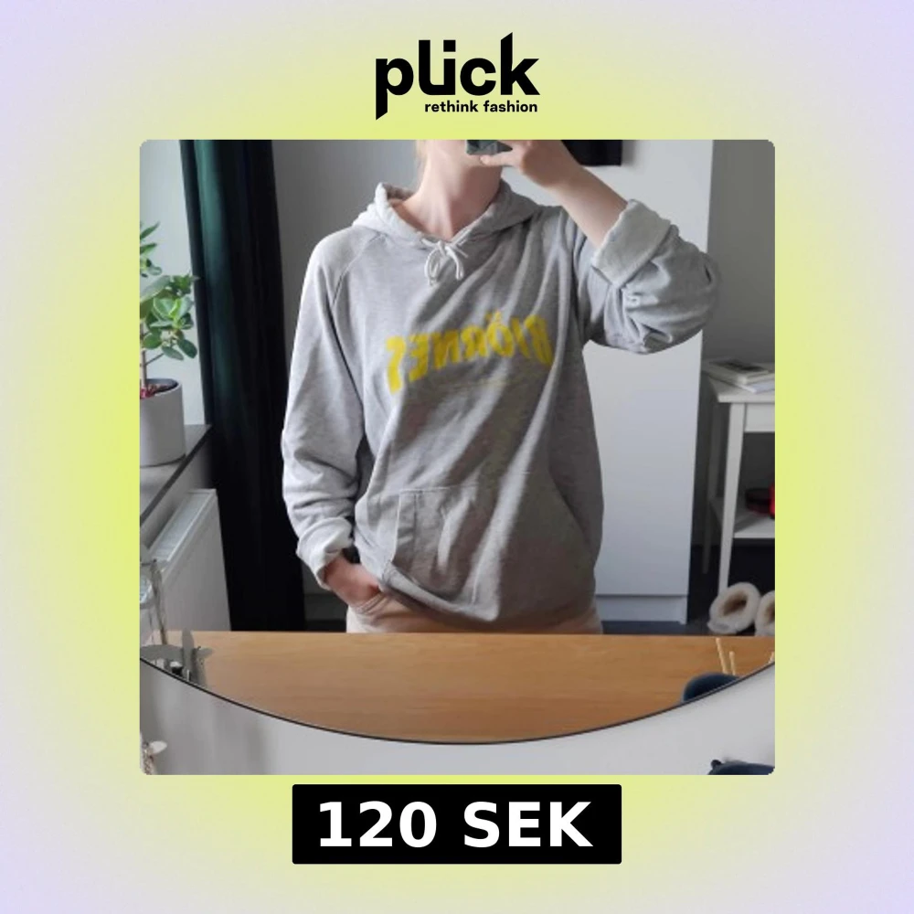 Skön och mysig (och rolig:)) hoodie som tyvärr inte kommer till användning längre. Ganska tunn så går att ha även när det är lite varmare och man slipper bli svettig! Egentligen herr strl M men funkar jättebra som en oversized S-M för dam också, lite långa ärmar men supersnyggt när man rullar upp dem 😌