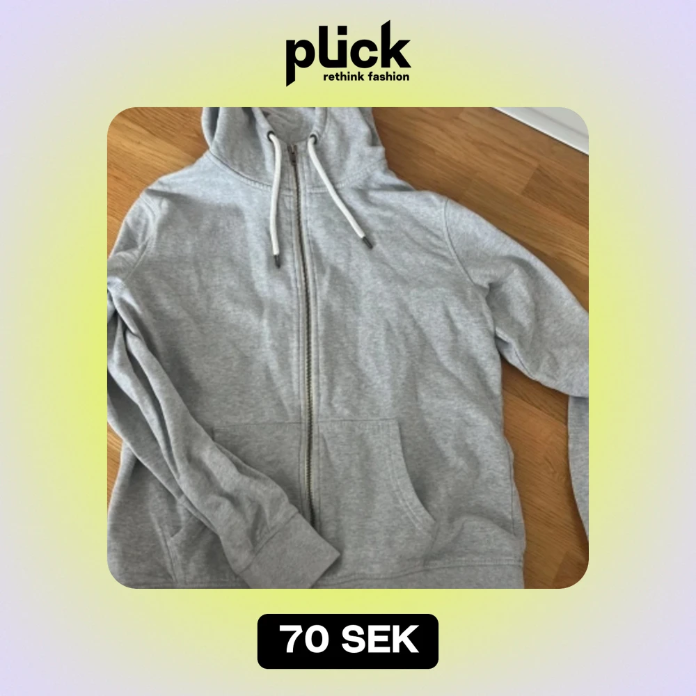 Grå hoodie med dragkedja. Oklar storlek. Det står 42 men den passar perfekt på mig som har s.