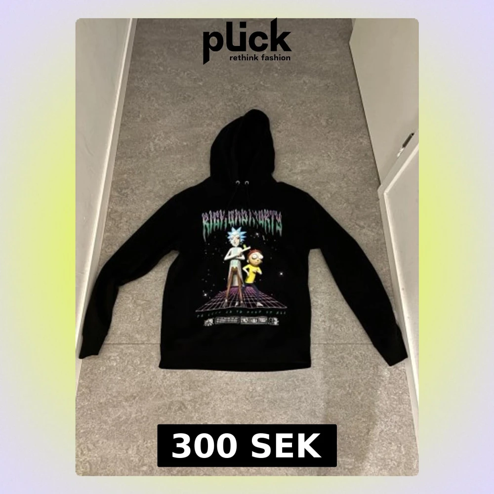 Rick & Morty Hoodie Cool och bekväm hoodie med motiv från den populära serien Rick & Morty. Tillverkad i mjukt och varmt material som passar perfekt för vardagsbruk. Klassisk passform med huva och känguruficka framtill. Ett måste för alla Rick & Morty-fans som vill ha en avslappnad men stilren look. Använder inte längre. M men funkar jätte bra som S