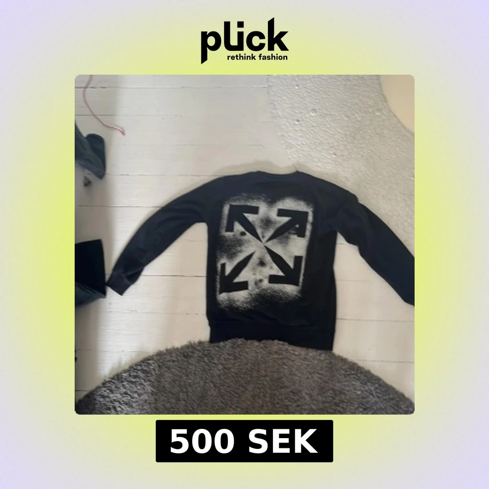Off white tröja använder inte länge för den är för liten på mig den har scan och den är i storlek S och har inga tecken på använding och pris kan diskuteras 9/10