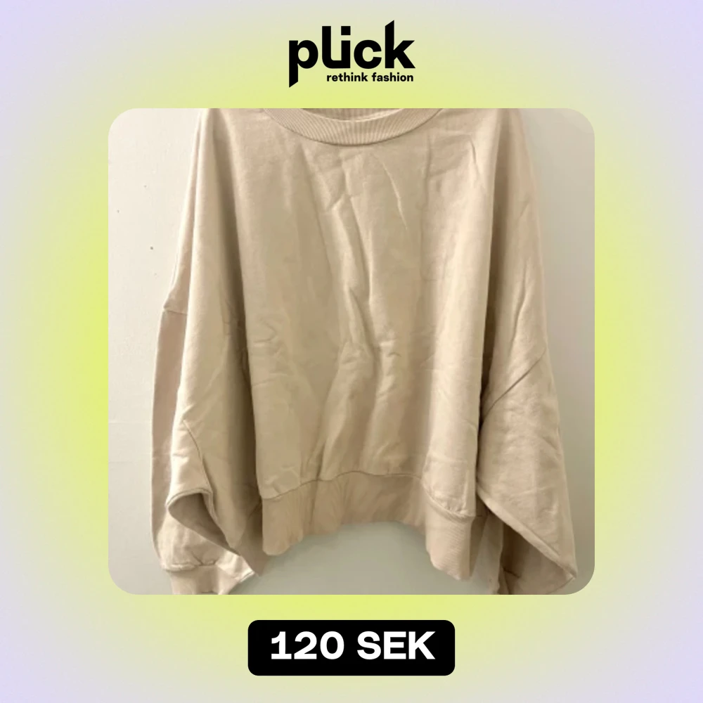 Sweatshirt i beige med stora vida ärmar. Strl. 52 normal i storleken, inte överdrivet oversized. Använd fåtal gånger, skicket är som ny.