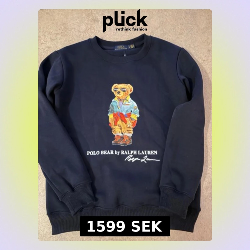 Svart hoodie från Ralph Lauren med ikoniska Polo Bear-trycket framtill. Klassisk passform med ribbade muddar och rund hals. Perfekt för dig som gillar streetstyle och vill sticka ut med en cool björn på bröstet.
