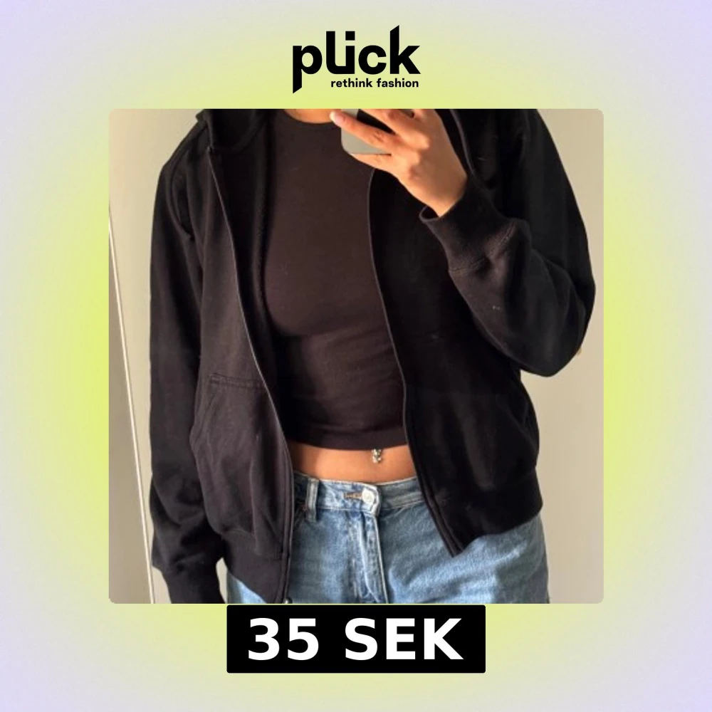 Svart hoodie med dragkedja