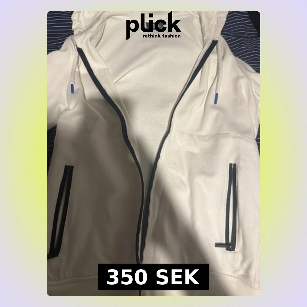 Vit fin zip hoodie från Karl Lagerfeld. Den passar inte mig längre och har använts minimalt antal gånger och är därför i bra skick! Skulle säga att den passar både S och M rätt bra, skriv för mer info