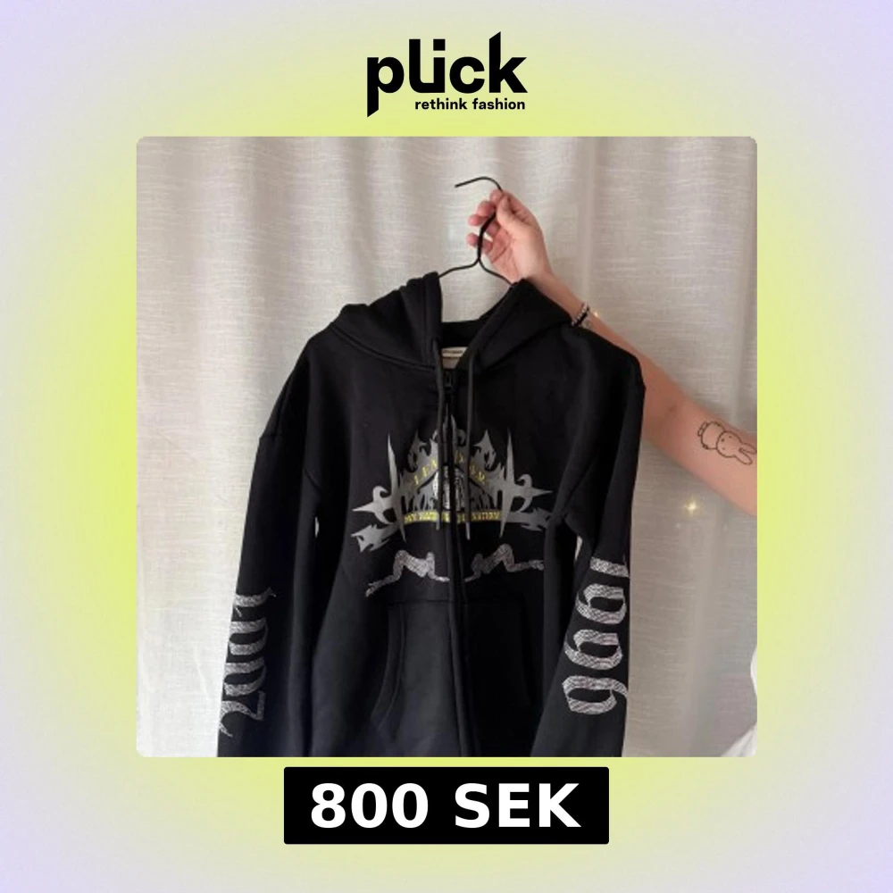Yung Lean hoodie från 2025 med rhinestone tryck på bröstet och i 1996 och 2001 på ärmarna.