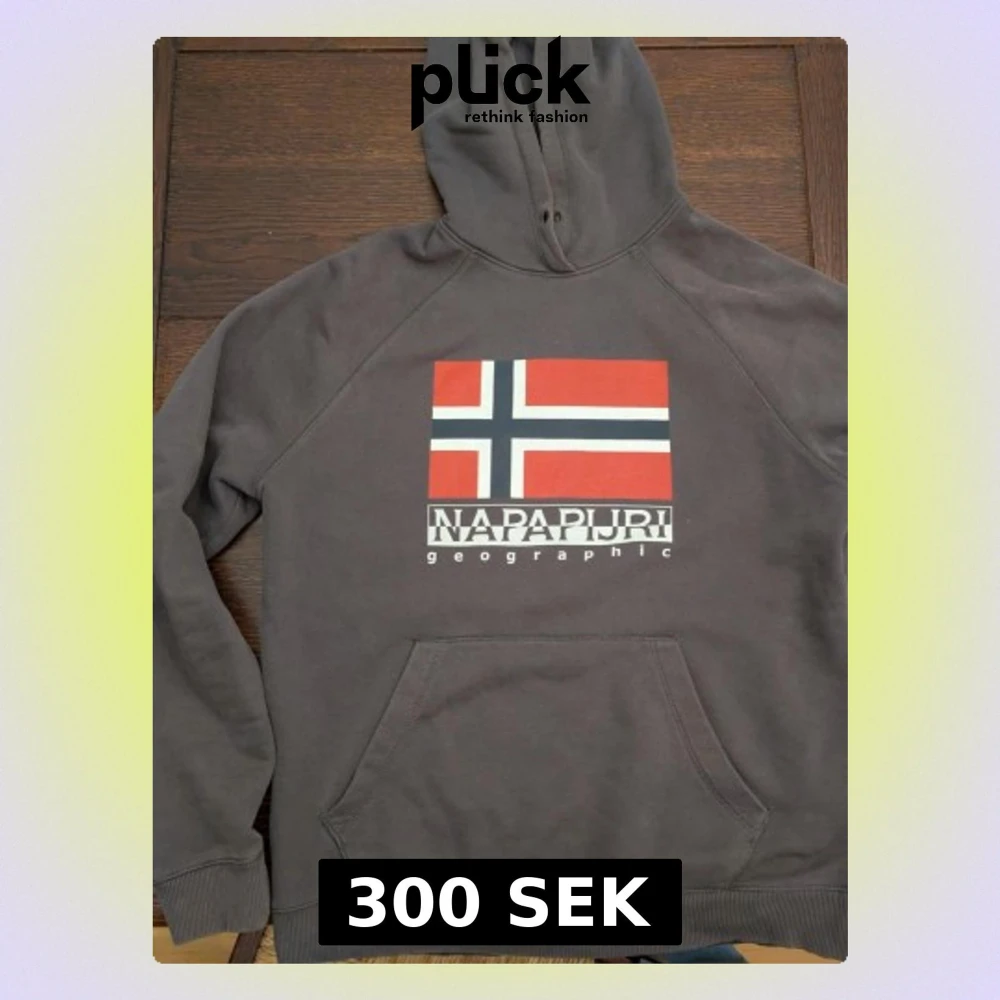 Säljer en brun hoodie från Napapijri med stor norsk flagga och logga på bröstet. Hoodien har huva och en stor magficka framtill. Perfekt för dig som gillar streetwear och vill ha något bekvämt och snyggt. Materialet känns mjukt och skönt. Inga deffekter vad jag kan se men fråga gärna efter fler bilder