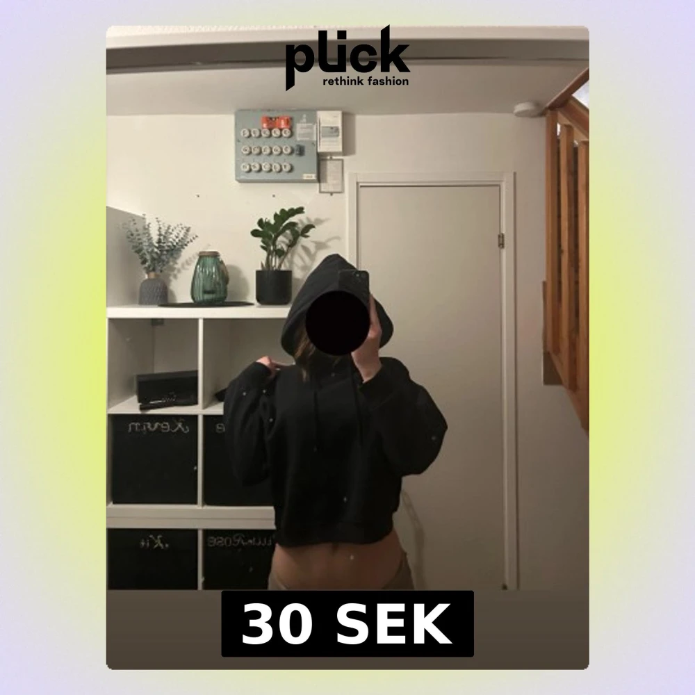 Säljer en svart cropped hoodie med huva och långa ärmar. Hoodien har en avslappnad passform och dragsko i huvan. Perfekt för en chill och trendig look. Materialet känns mjukt och bekvämt mot huden.
