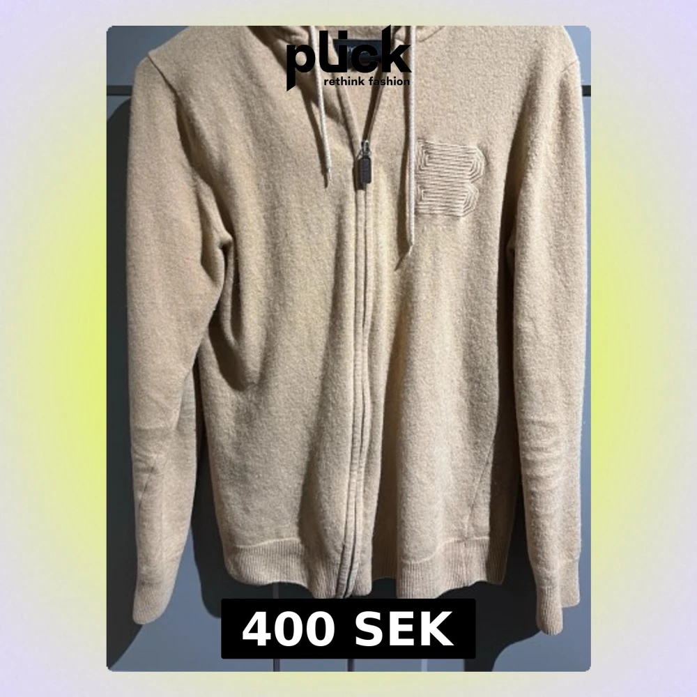 Snygg beige hoodie från Bytom med dragkedja framtill och broderad B-logga på bröstet. Tillverkad i mjukt material med ribbade muddar och justerbar huva med snören. Perfekt för en avslappnad och stilren look. Passar M Fin skick på den men litet håll under högra armhåla (se bild 3)