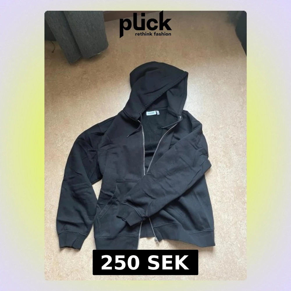 Säljer en oanvänd svart hoodie från Weekday med dragkedja.