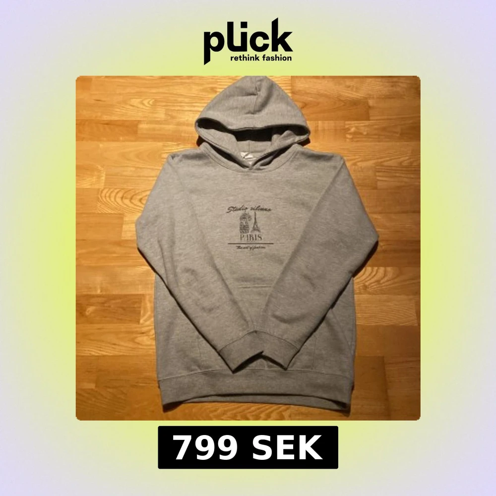 Grå hoodie från Studio Milano med tryck av Eiffeltornet och texten 'Paris' på bröstet. Klassisk huva och magficka, perfekt för en chill och avslappnad stil. Mjuk och skön bomullsblandning, långärmad modell.