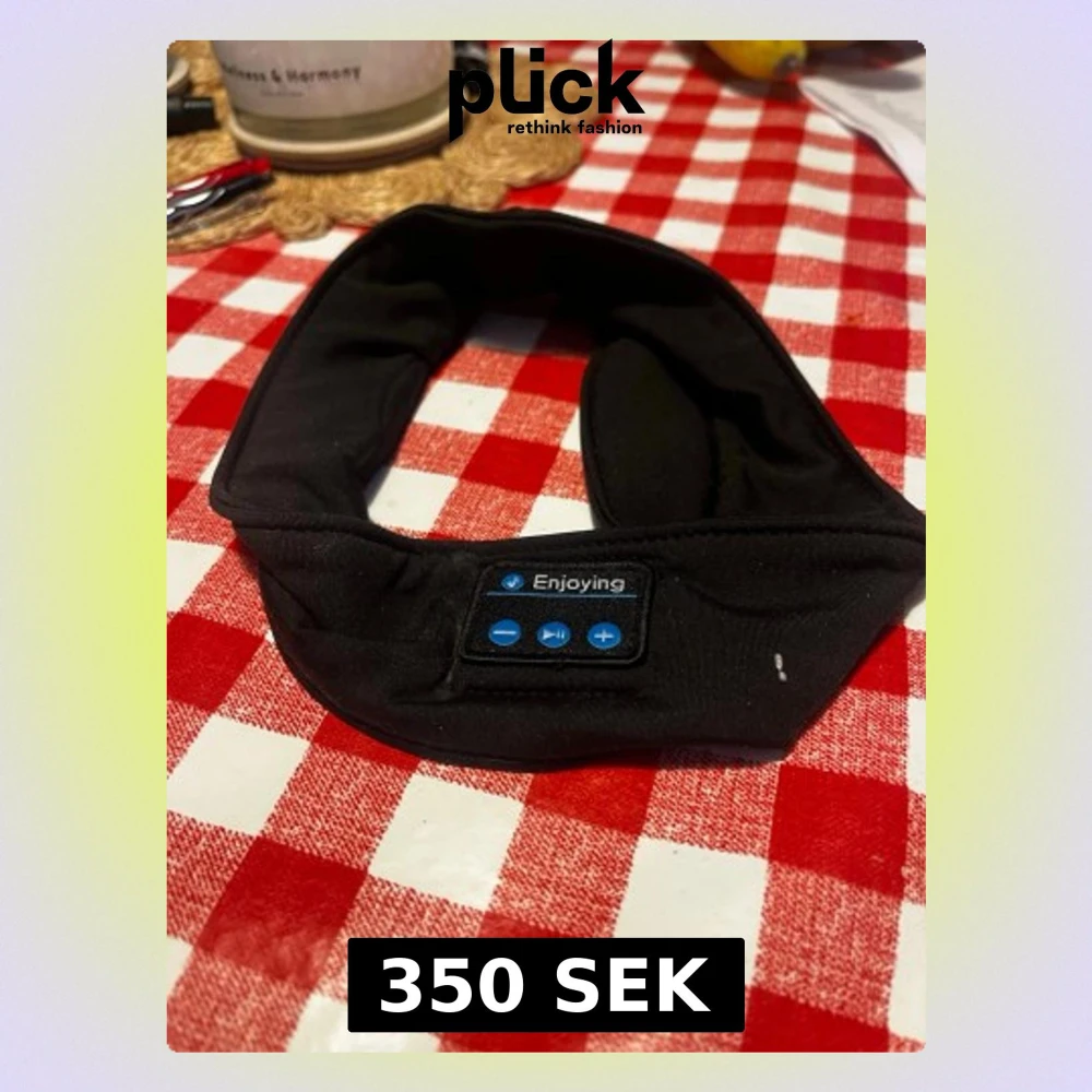 Säljer ett svart trådlöst pannband med inbyggda hörlurar från Enjoying. Perfekt för musik eller poddar när du tränar eller chillar. Mjukt tyg och smidig kontrollpanel med knappar för volym och play/pause direkt på pannbandet.